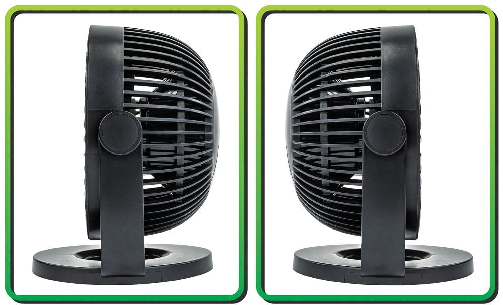 Głowica wentylatora umożliwia ręczną regulację kąta nachylenia, co pozwala skierować nawiew tam, gdzie jest on najbardziej potrzebny. Funkcja ta zwiększa komfort użytkowania i poprawia efektywność chłodzenia w konkretnym obszarze.