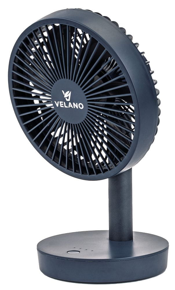 Kompaktowa konstrukcja pozwala na ustawienie wentylatora na biurku, stoliku nocnym czy półce bez zajmowania dużo miejsca. Gumowe nóżki zwiększają stabilność, zapobiegając przesuwaniu się urządzenia podczas pracy. Dzięki niewielkiej wadze i bezprzewodowej pracy wentylator sprawdzi się także w podróży.