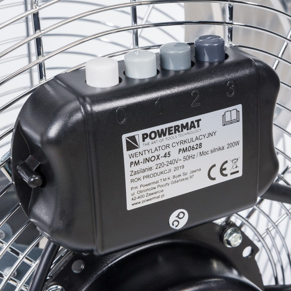 Mocny silnik 200W w połączeniu z dużą średnicą wentylatora 45cm pozwala wytworzenie mocnego strumienia powietrza, a co za tym idzie na efektywne mieszanie powietrza. Obudowa została wykonana z wytrzymałej stali nierdzewnej INOX co zwiększa jego wytrzymałość.