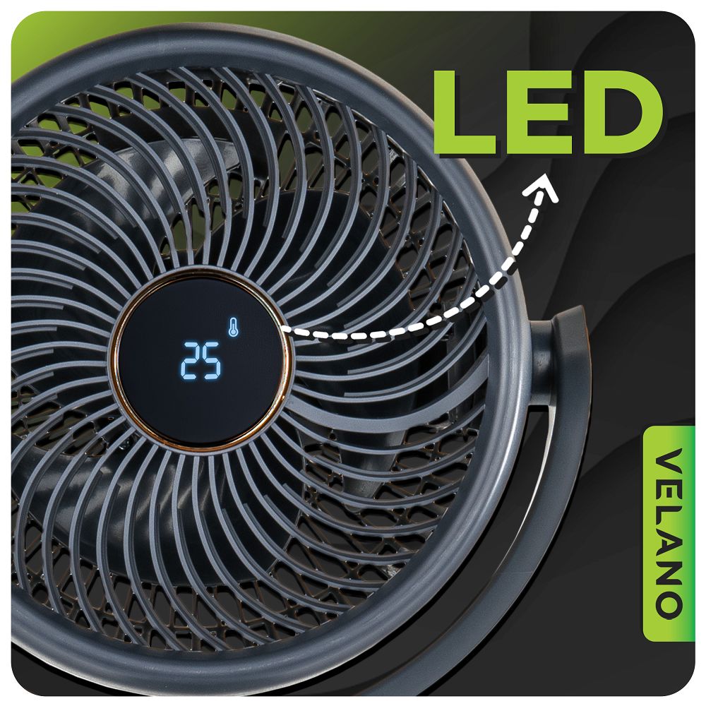 - Dzięki funkcji oscylacji wentylator równomiernie rozprowadza powietrze w całym pomieszczeniu, eliminując strefy o zastoju temperatury.