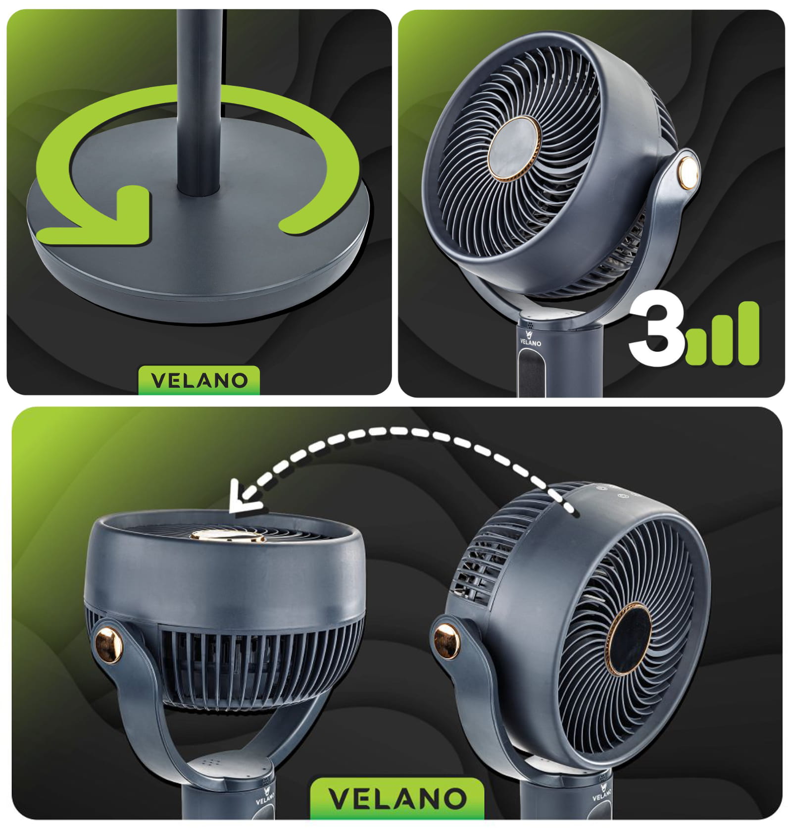 Wentylator podłogowy z oscylacją 4D, pilotem, regulacją wysokości i wyświetlaczem LCD to nowoczesne i funkcjonalne urządzenie chłodzące do użytku domowego lub biurowego. Dzięki mocy 50 W i wielu możliwościom konfiguracji zapewnia skuteczną cyrkulację powietrza i komfort nawet w najbardziej upalne dni. Posiada trzy tryby nawiewu, regulację prędkości, funkcję oscylacji, timer do 15 godzin oraz intuicyjne sterowanie za pomocą dotykowego panelu lub pilota.
