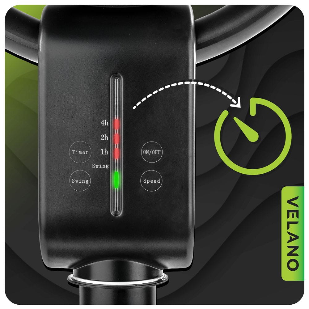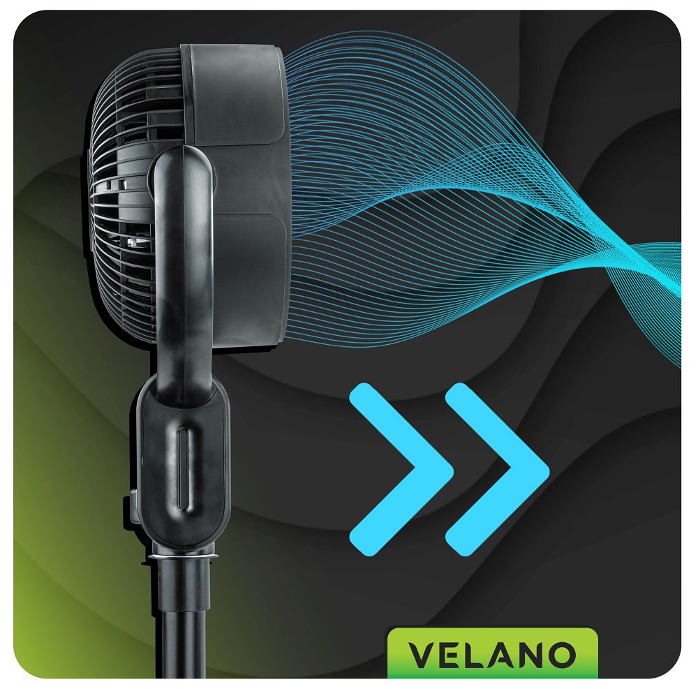 Wentylator VELWEP0014 wyposażony jest w solidny silnik o mocy 50 W, który zapewnia intensywny i równomierny strumień powietrza. Wydajna praca urządzenia skutecznie wspomaga cyrkulację powietrza w pomieszczeniu, przynosząc ulgę nawet podczas najgorętszych dni.
