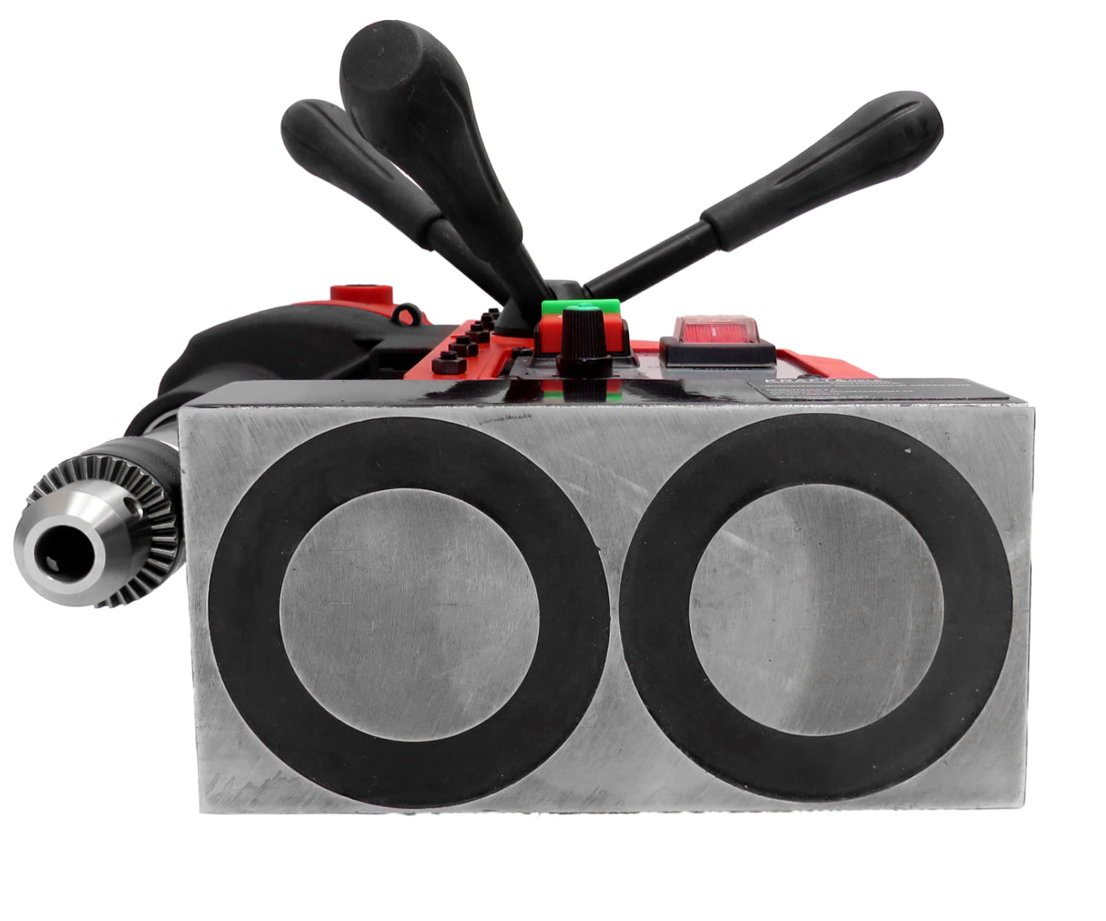 - Magnetyczna podstawa 1700N – Elektromagnes o dużej sile przyciągania gwarantuje stabilne mocowanie podczas wiercenia.