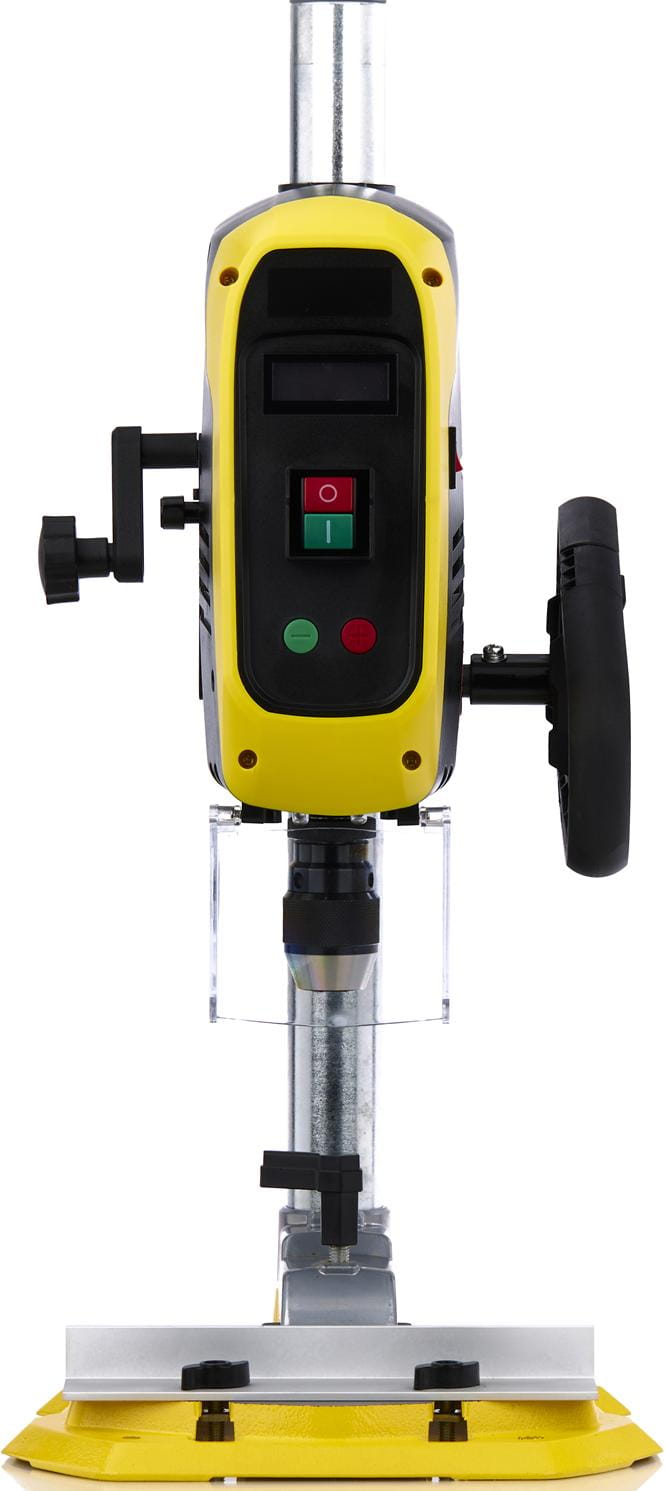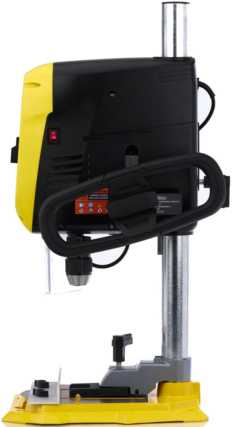 Kompaktowa budowa umożliwia ustawienie urządzenia nawet w ograniczonej przestrzeni roboczej. Stabilna kolumna o średnicy 46 mm oraz solidna podstawa zapewniają odpowiednią sztywność konstrukcji. Przemyślany układ elementów sterujących oraz czytelny wyświetlacz LCD ułatwiają obsługę i zwiększają komfort pracy.