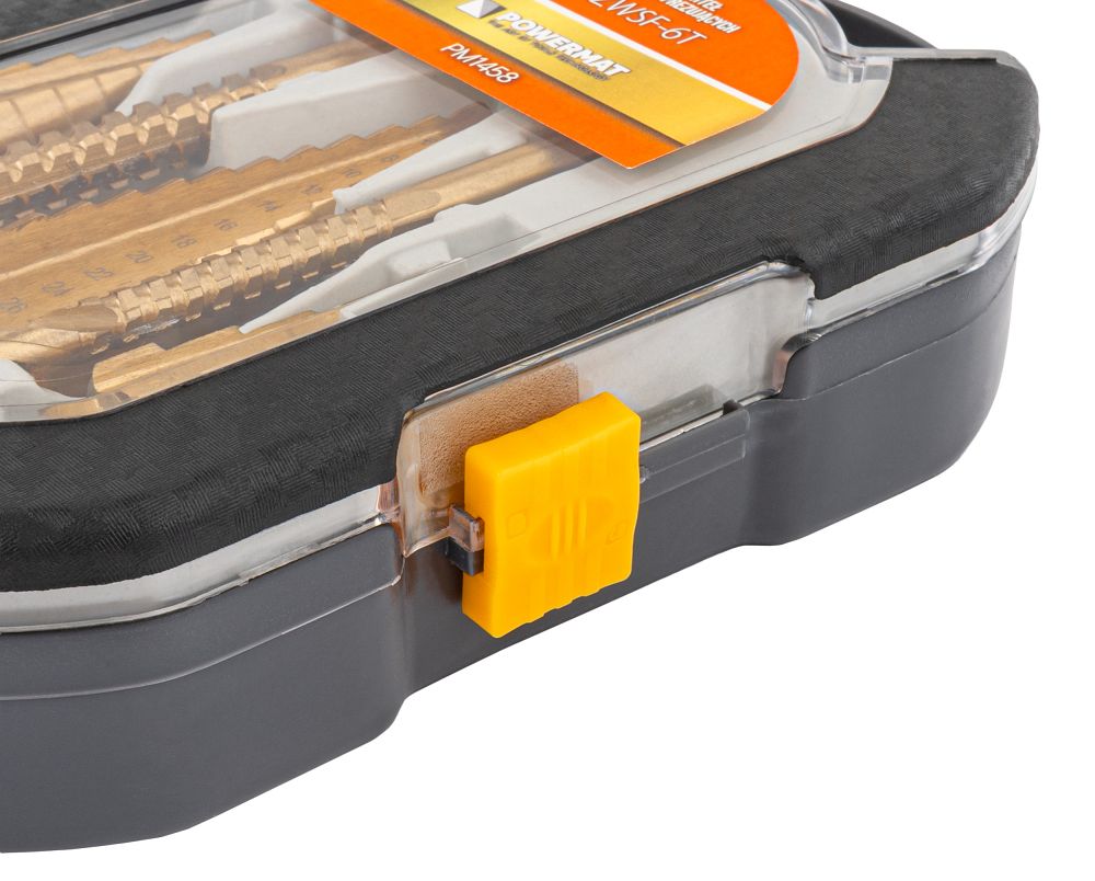 Wykonanie ze stali szybkotnącej HSS zapewnia odporność na przegrzewanie, ścieranie oraz utratę ostrości. Geometria stożkowa wierteł stopniowych umożliwia centryczne wiercenie bez efektu ześlizgiwania, a specjalnie wyprofilowane ostrza ułatwiają swobodne odprowadzanie wiórów. Konstrukcja wierteł frezujących pozwala na precyzyjną obróbkę nawet niewielkich detali. Całość uzupełnia praktyczne pudełko zabezpieczające zestaw podczas przechowywania i transportu.