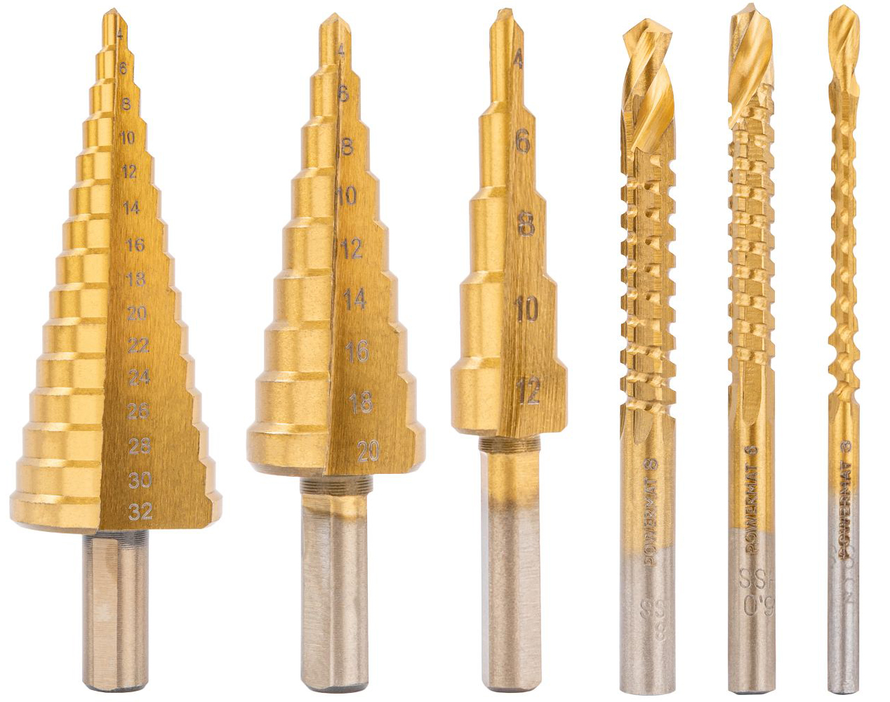 WIERTŁA STOPNIOWE FREZUJĄCE 4-32mm DO METALU HSS DREWNA PLASTIKU 3-8mm 6el