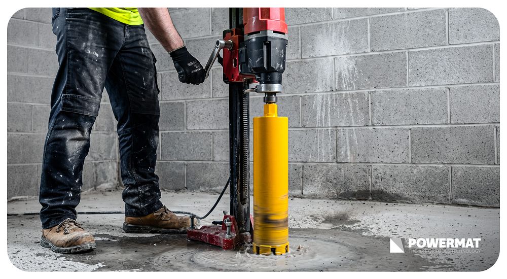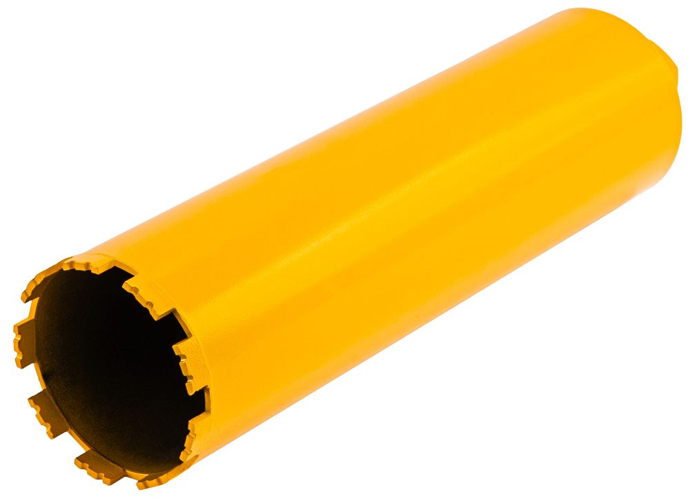 Solidny stalowy korpus zapewnia odpowiednią sztywność podczas pracy, co ogranicza drgania i poprawia dokładność wiercenia. Długość całkowita 450 mm umożliwia wykonywanie głębokich odwiertów bez konieczności stosowania przedłużek. Optymalnie rozmieszczone segmenty diamentowe gwarantują równomierne zużycie oraz stabilne prowadzenie narzędzia w materiale.