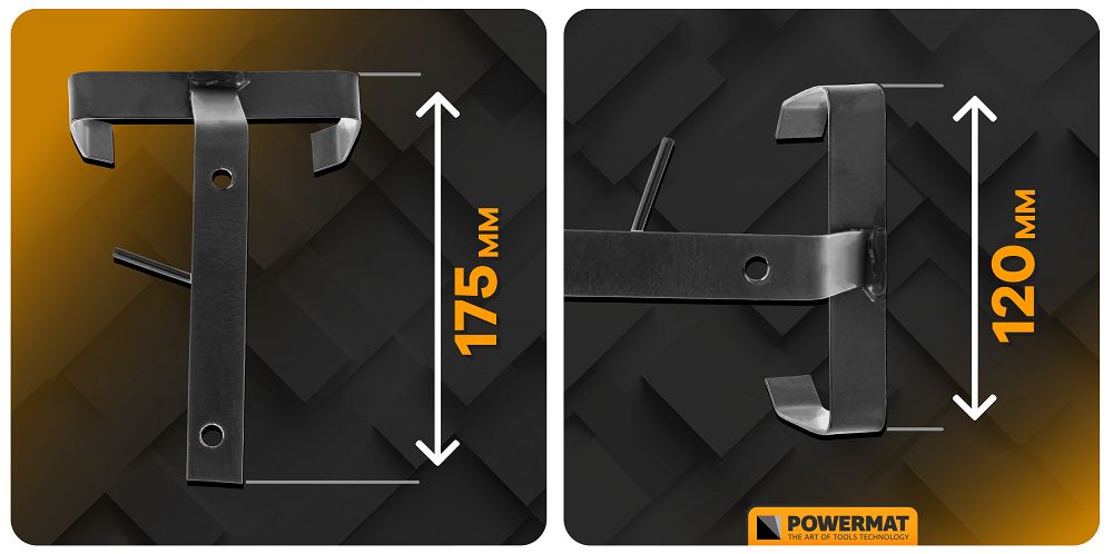 Uchwyt został zaprojektowany z myślą o szerokim zastosowaniu. Dzięki wewnętrznej szerokości 120 mm pasuje do większości modeli kos i podkaszarek dostępnych na rynku, niezależnie od marki czy typu urządzenia. To uniwersalne rozwiązanie dla użytkowników indywidualnych oraz profesjonalnych serwisów ogrodniczych. W dolnej części uchwytu znajduje się wbudowany haczyk, który umożliwia wygodne zawieszenie dodatkowych akcesoriów – takich jak szelki, żyłki czy klucze serwisowe. Pozwala to na zachowanie porządku i szybki dostęp do niezbędnych elementów wyposażenia.
