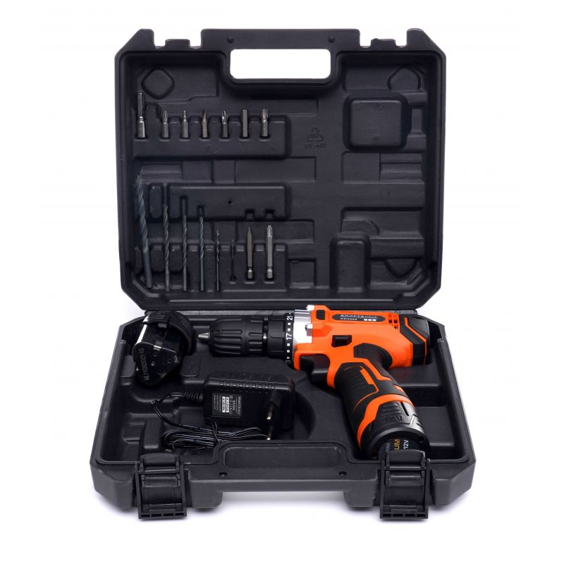 Nowoczesne, wszechstronne narzędzie przeznaczone do wiercenia i wkręcania w drewnie, metalu oraz tworzywach sztucznych. Doskonale sprawdza się w domu, warsztacie, garażu czy na budowie. Wyposażona w wydajny akumulator litowo-jonowy 12V (2x 1,5Ah) oraz 2-biegową przekładnię, zapewnia płynną regulację obrotów i wysoką precyzję pracy. Dodatkowe 21 pozycji sprzęgła umożliwiają dokładne dopasowanie momentu obrotowego do rodzaju materiału.
