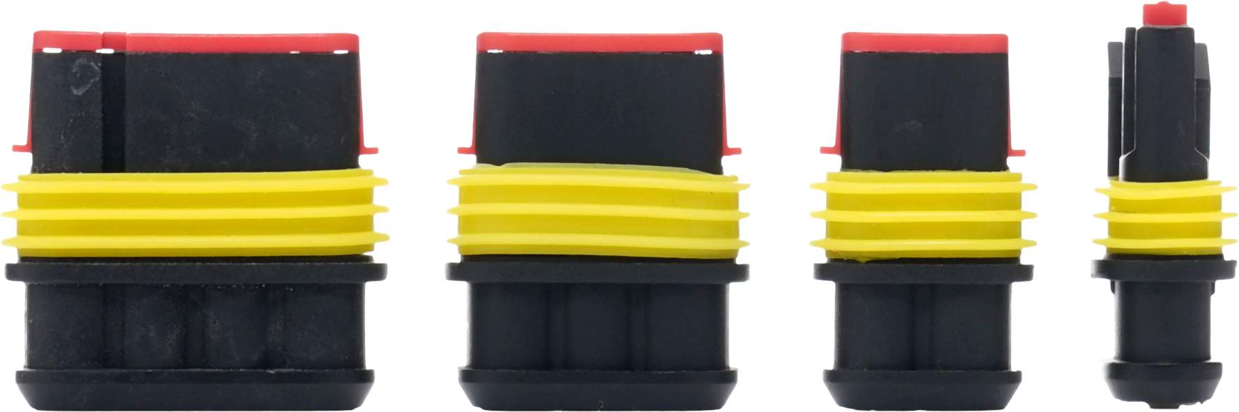 Elementy zestawu zostały zaprojektowane z myślą o łatwym montażu oraz trwałości użytkowania. Obudowy wykonane z poliamidu zapewniają odporność na uszkodzenia mechaniczne, a precyzyjnie dopasowane piny gwarantują stabilne i pewne połączenie. Dodatkowe uszczelnienia silikonowe zwiększają odporność na czynniki zewnętrzne, co przekłada się na długą żywotność instalacji.