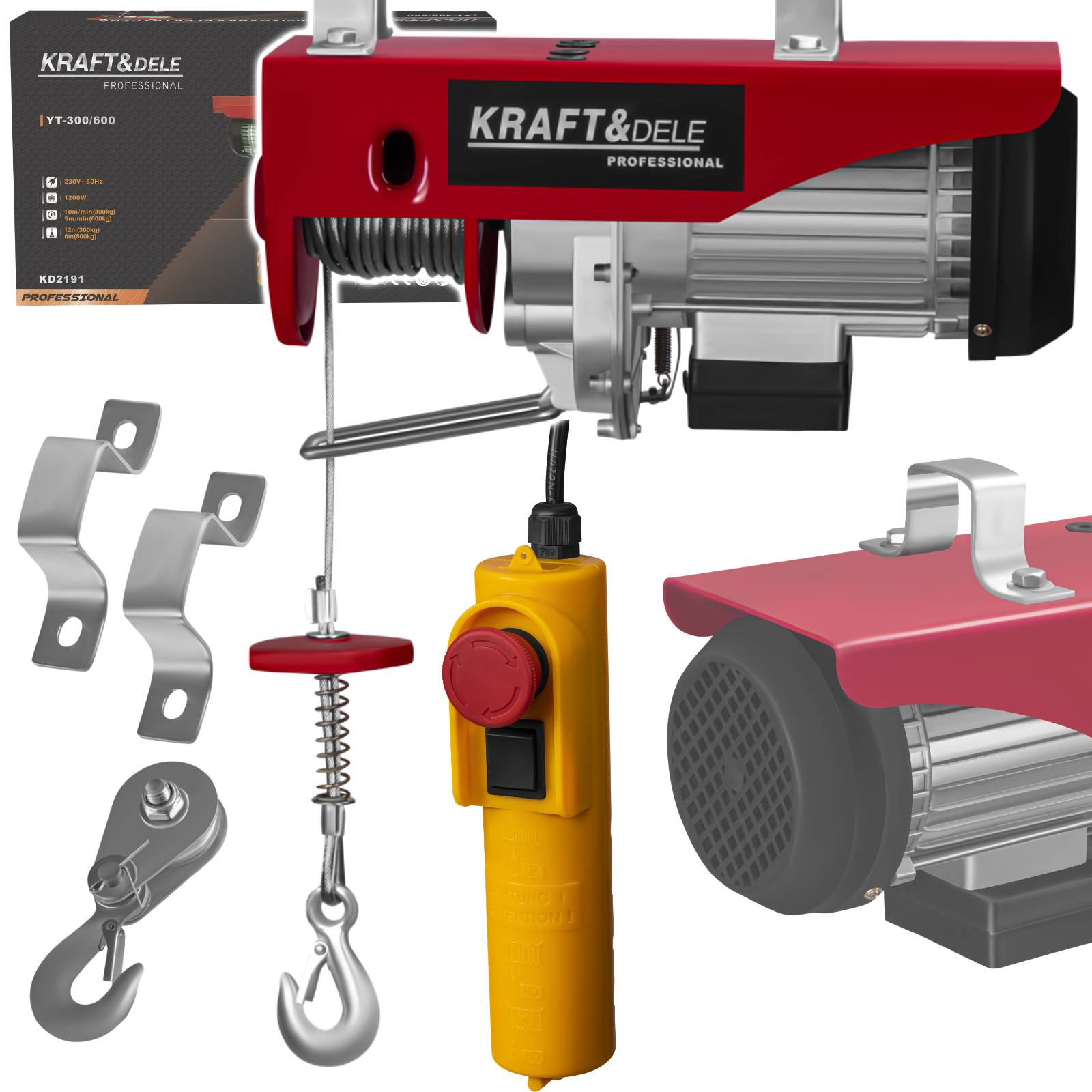 WYCIĄGARKA WCIĄGARKA ELEKTRYCZNA 230V 1200W 300/600kg +PILOT STALOWA LINA