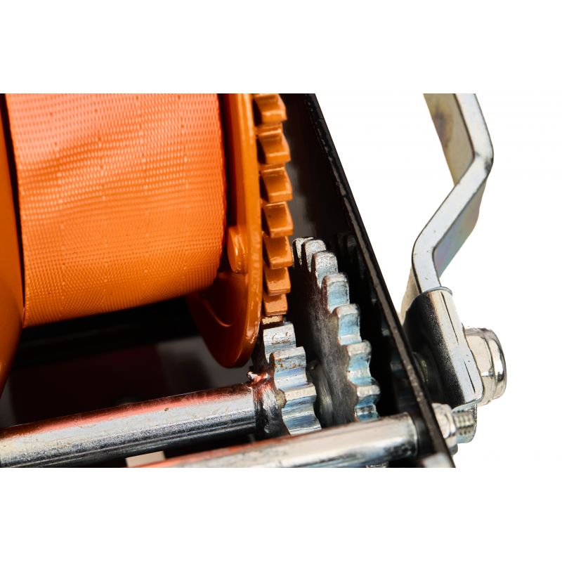 Urządzenie zostało zaprojektowane z myślą o bezpiecznej i wygodnej pracy. Stabilna konstrukcja przekładni oraz przełączana blokada biegów poprawiają kontrolę nad procesem wciągania. Duża korba zapewnia komfort operowania nawet przy większych obciążeniach, a szeroki pas oraz solidny hak gwarantują pewne utrzymanie ładunku. Konstrukcja sprawdza się zarówno przy sporadycznym, jak i regularnym użytkowaniu.