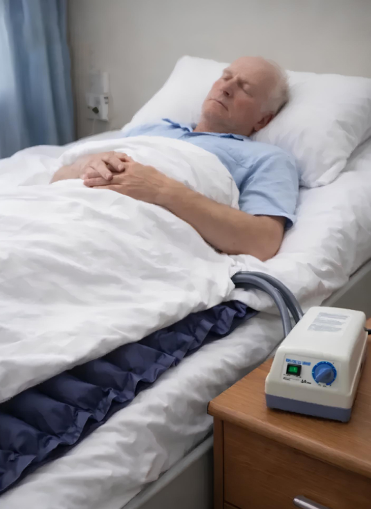 Zastosowana pompa o niskim poziomie hałasu umożliwia spokojny odpoczynek bez uciążliwych dźwięków. Stała i równomierna praca systemu powietrznego poprawia komfort użytkownika oraz ułatwia codzienną opiekę.
