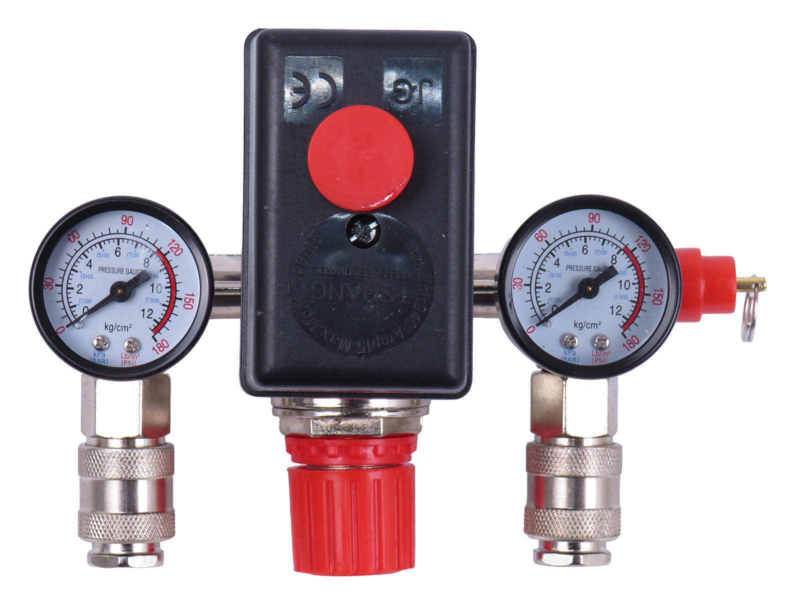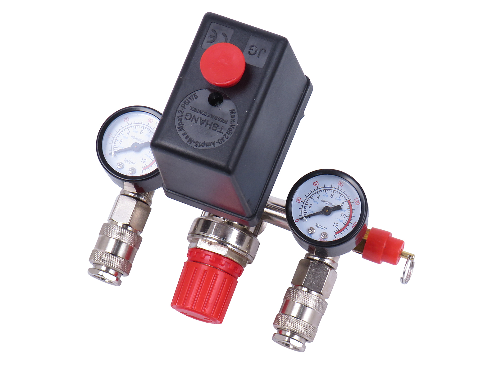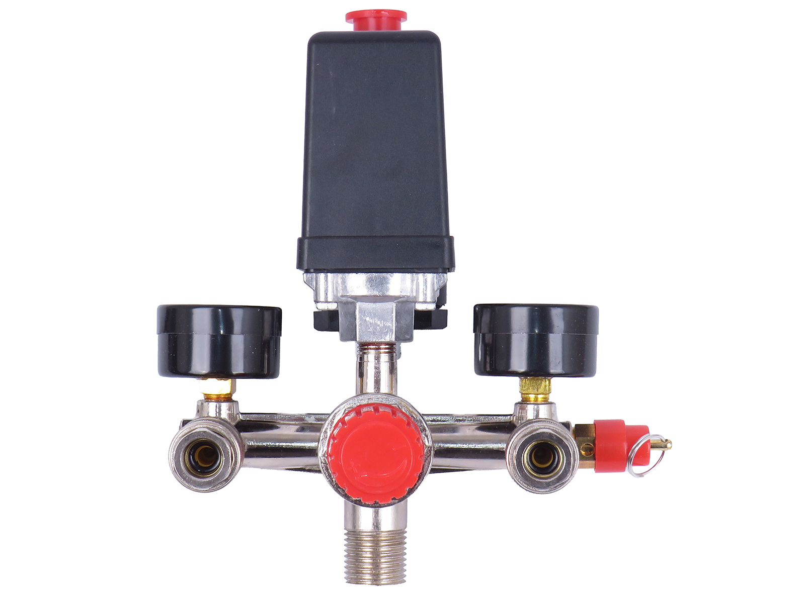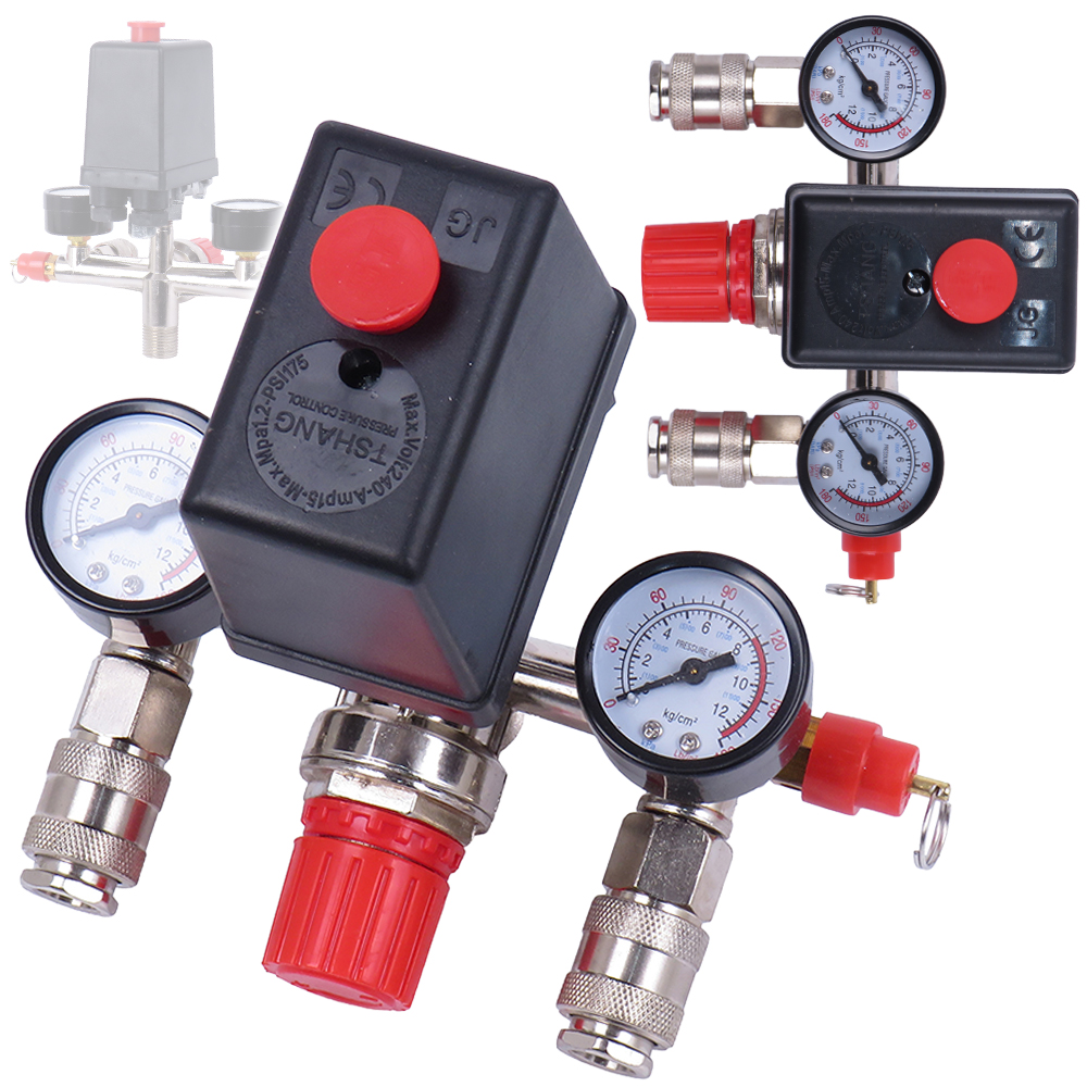 Kompaktowa obudowa umożliwia montaż w typowych miejscach instalacyjnych przy zbiorniku lub rozdzielaczu powietrza. Solidne wykonanie zapewnia odporność na drgania, zmiany temperatury oraz intensywną eksploatację. Element regulacyjny pozwala na precyzyjne ustawienie parametrów pracy, co ułatwia dopasowanie do specyfiki danej instalacji.