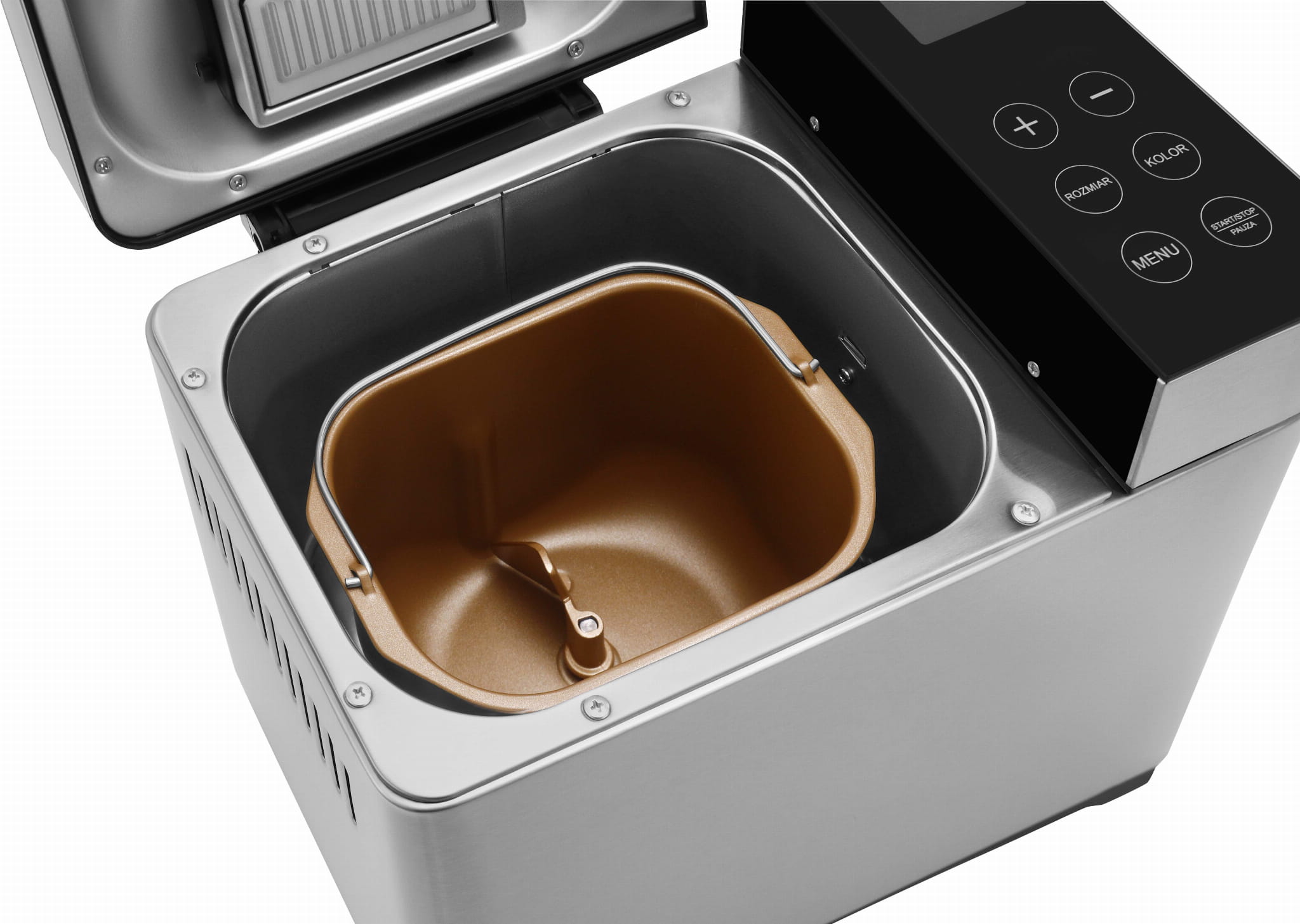 - Łatwe czyszczenie – wyjmowana misa z powłoką nieprzywierającą ułatwia wyjmowanie pieczywa i konserwację urządzenia