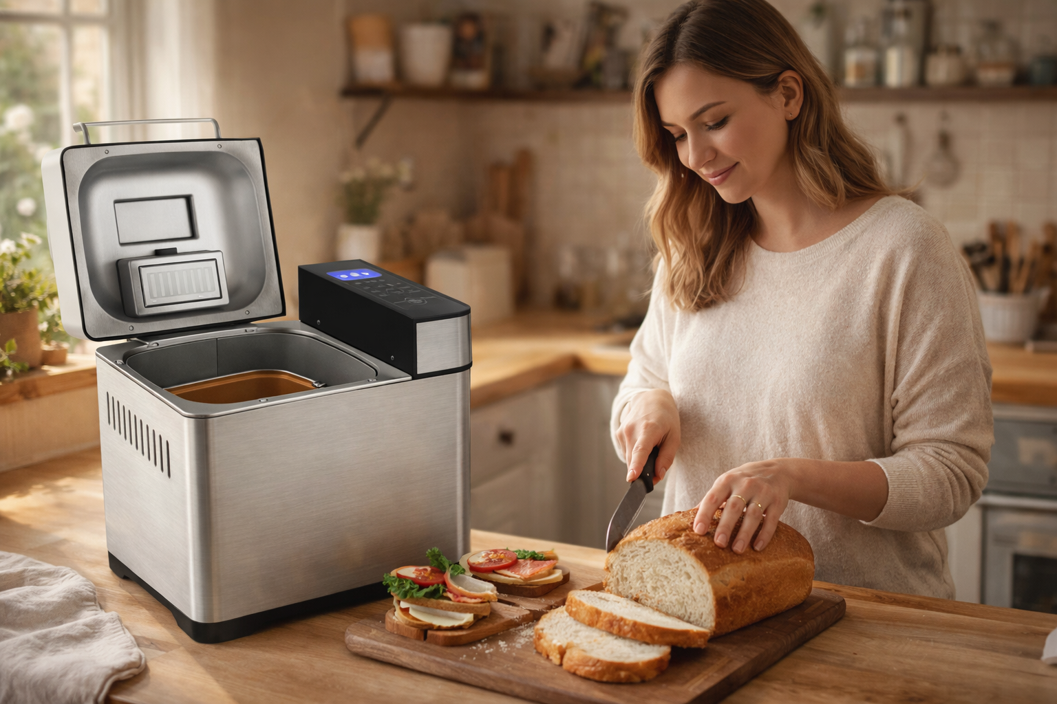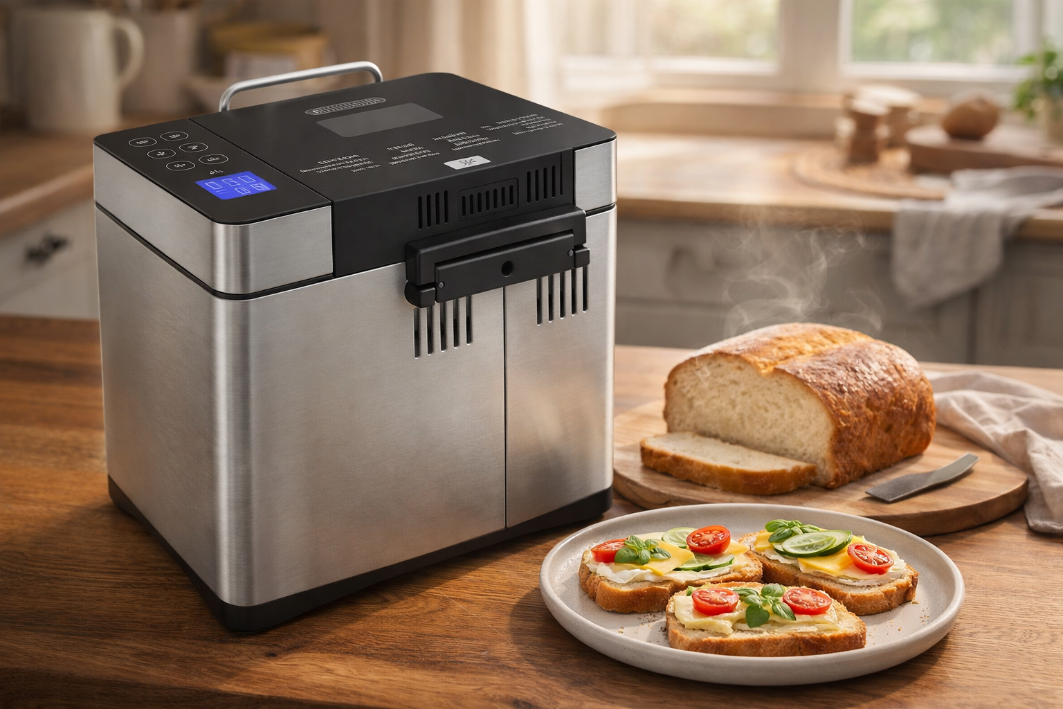 Nowoczesny wypiekacz do chleba to funkcjonalne urządzenie kuchenne przeznaczone do automatycznego przygotowywania domowego pieczywa oraz wielu innych potraw. Dzięki szerokiemu zakresowi programów i intuicyjnej obsłudze umożliwia wygodne pieczenie chleba o różnych smakach i strukturze, a także przygotowanie m.in. ciasta, dżemu czy jogurtu. To praktyczne rozwiązanie dla osób ceniących świeże, domowe wypieki bez konieczności ręcznego wyrabiania i kontrolowania procesu pieczenia.