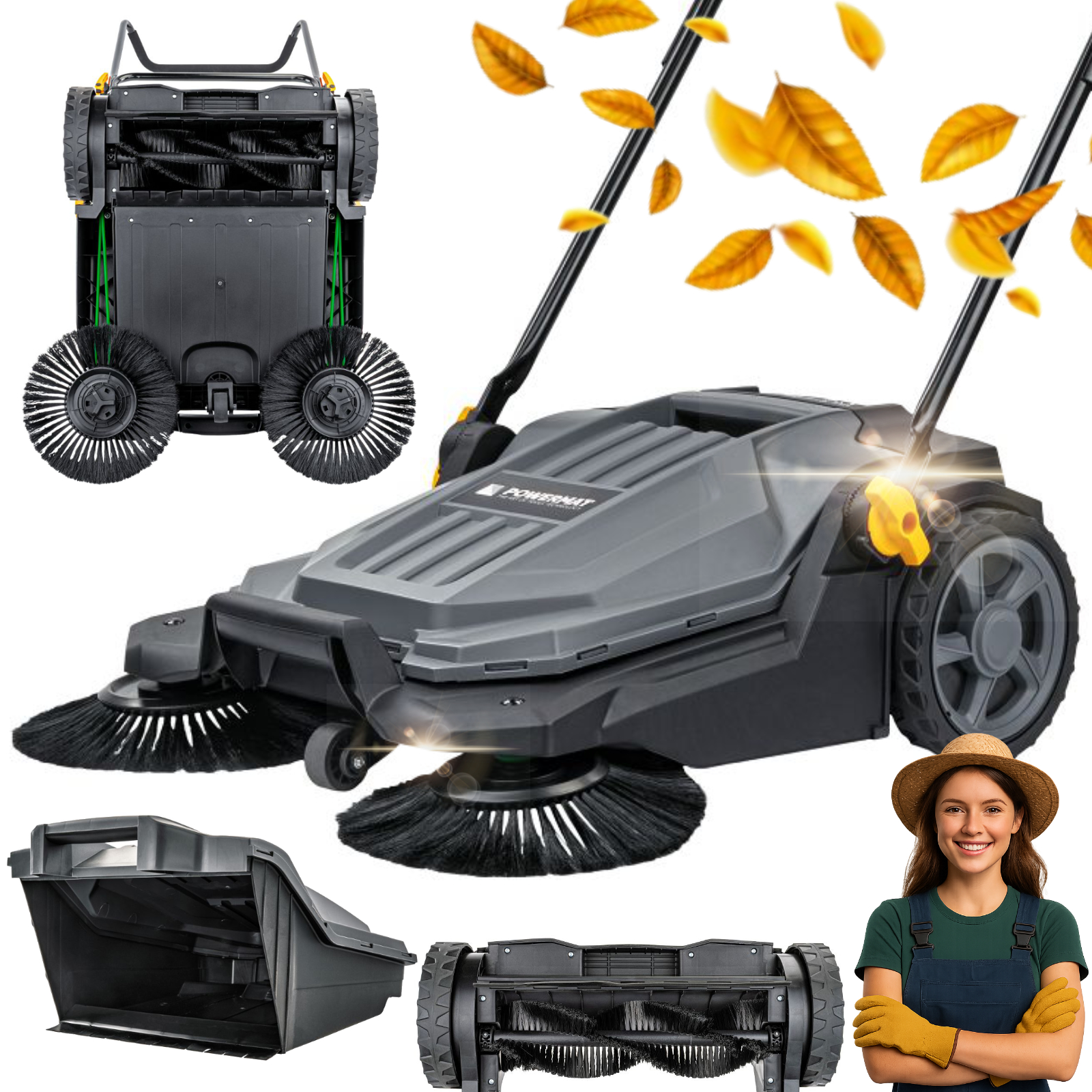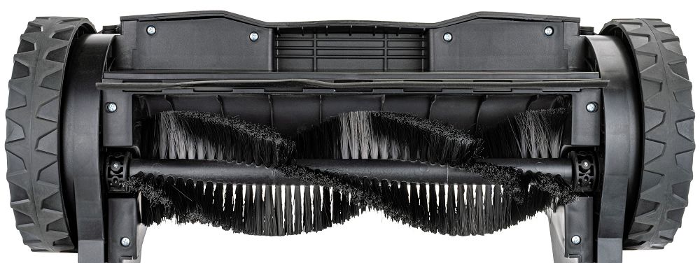 Urządzenie działa w pełni mechanicznie, bez konieczności podłączenia do zasilania. Ruch szczotek generowany jest siłą popychania – to proste, ekonomiczne i niezawodne rozwiązanie.