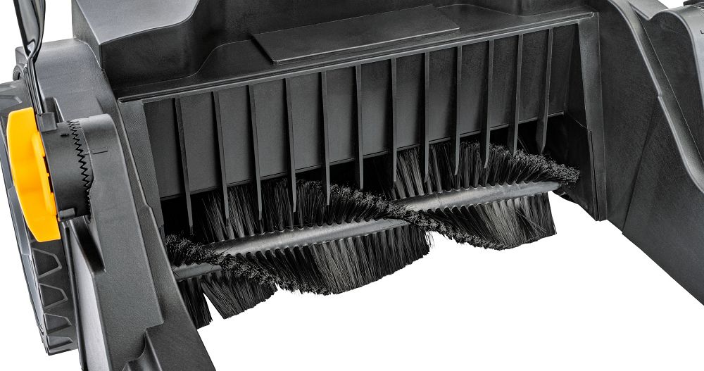 Zamiatarka wyposażona jest w dwie boczne szczotki o średnicy 260 mm oraz szczotkę walcową, które skutecznie zbierają zanieczyszczenia nawet przy krawędziach i w narożnikach. Szerokość robocza 650 mm umożliwia szybkie czyszczenie dużych obszarów.