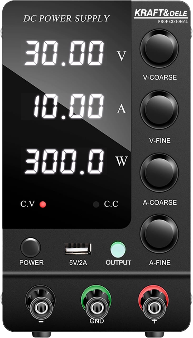 Urządzenie przeznaczone do zasilania oraz testowania układów elektronicznych w warunkach warsztatowych, serwisowych i laboratoryjnych. Umożliwia stabilne ustawienie napięcia oraz prądu wyjściowego, co jest istotne podczas diagnostyki, uruchamiania i analizy pracy urządzeń elektronicznych. Dzięki czytelnym wyświetlaczom oraz intuicyjnej regulacji parametrów zapewnia pełną kontrolę nad procesem zasilania.