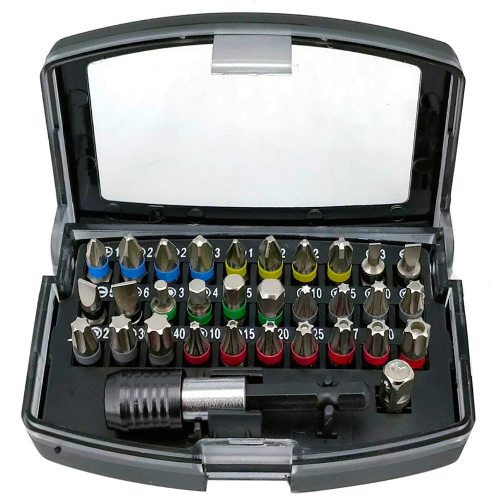 - Typy bitów: Philips, Pozi, Slotted, Hex, Torx, Torx tamperproof