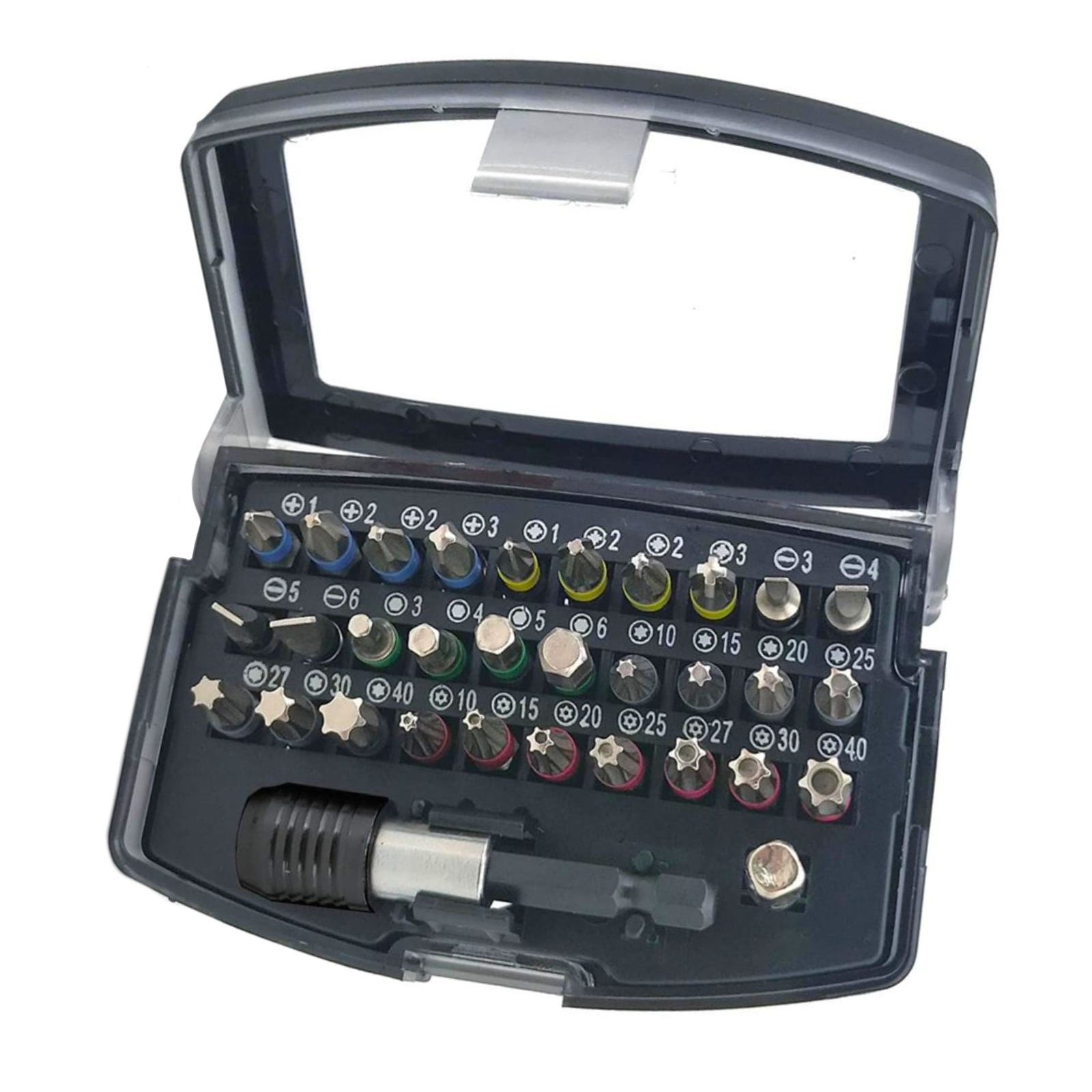 - Torx: T10, T15, T20, T25, T27, T30, T40