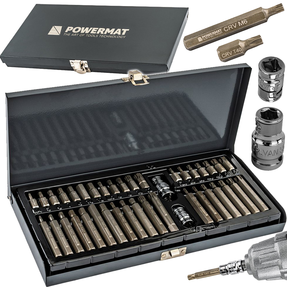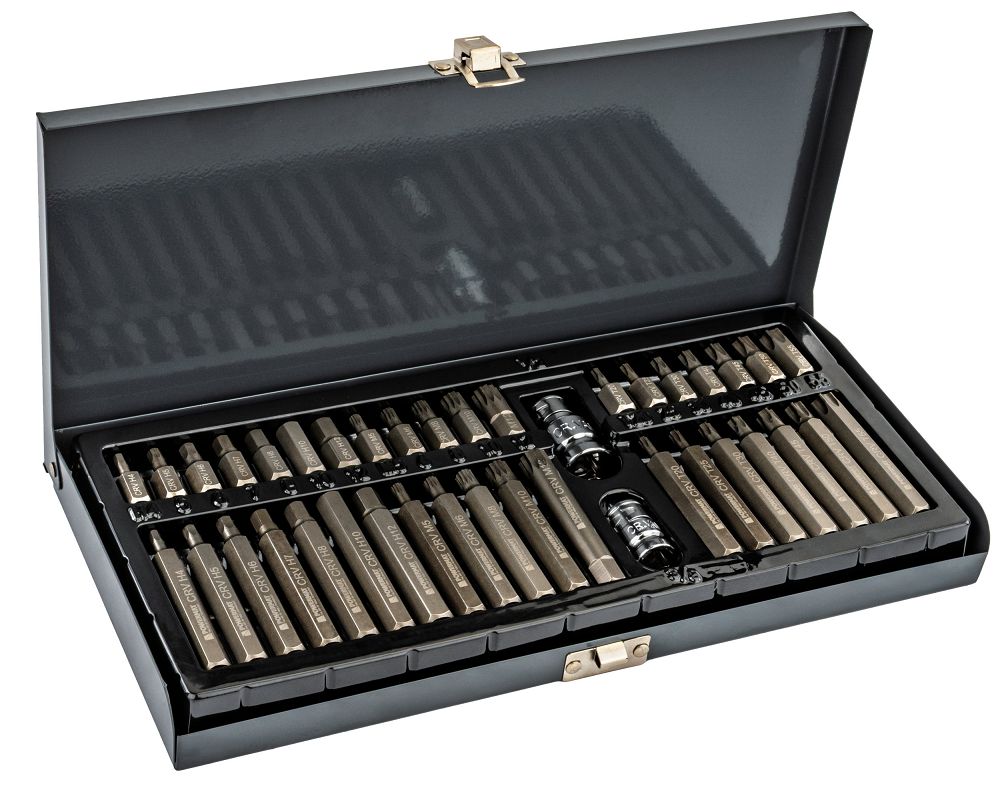 Zestaw umieszczony jest w metalowej walizce transportowej, która chroni elementy przed uszkodzeniem oraz ułatwia ich przechowywanie i transport. Każdy bit i adapter ma swoje miejsce, co pozwala zachować porządek i szybko skompletować narzędzia do pracy.