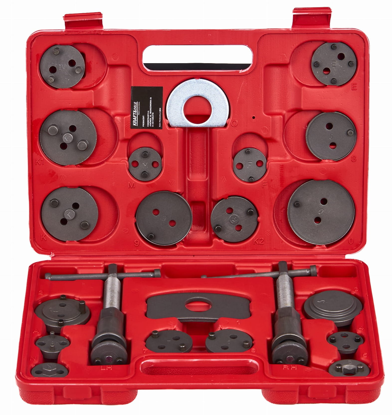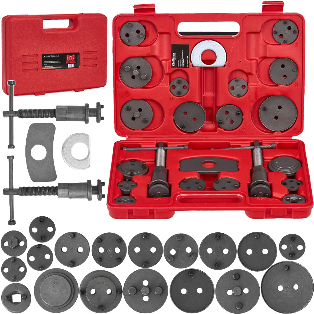 Zestaw do wyciskania tłoczków hamulcowych to profesjonalne narzędzie przeznaczone do serwisowania układów hamulcowych w większości samochodów osobowych produkcji europejskiej i azjatyckiej. Umożliwia szybkie, precyzyjne oraz bezpieczne cofnięcie tłoczków hamulcowych w zaciskach tarczowych, w tym również ceramicznych. Dzięki solidnemu wykonaniu i przemyślanej konstrukcji zestaw doskonale sprawdza się zarówno w profesjonalnych warsztatach, jak i podczas napraw domowych.