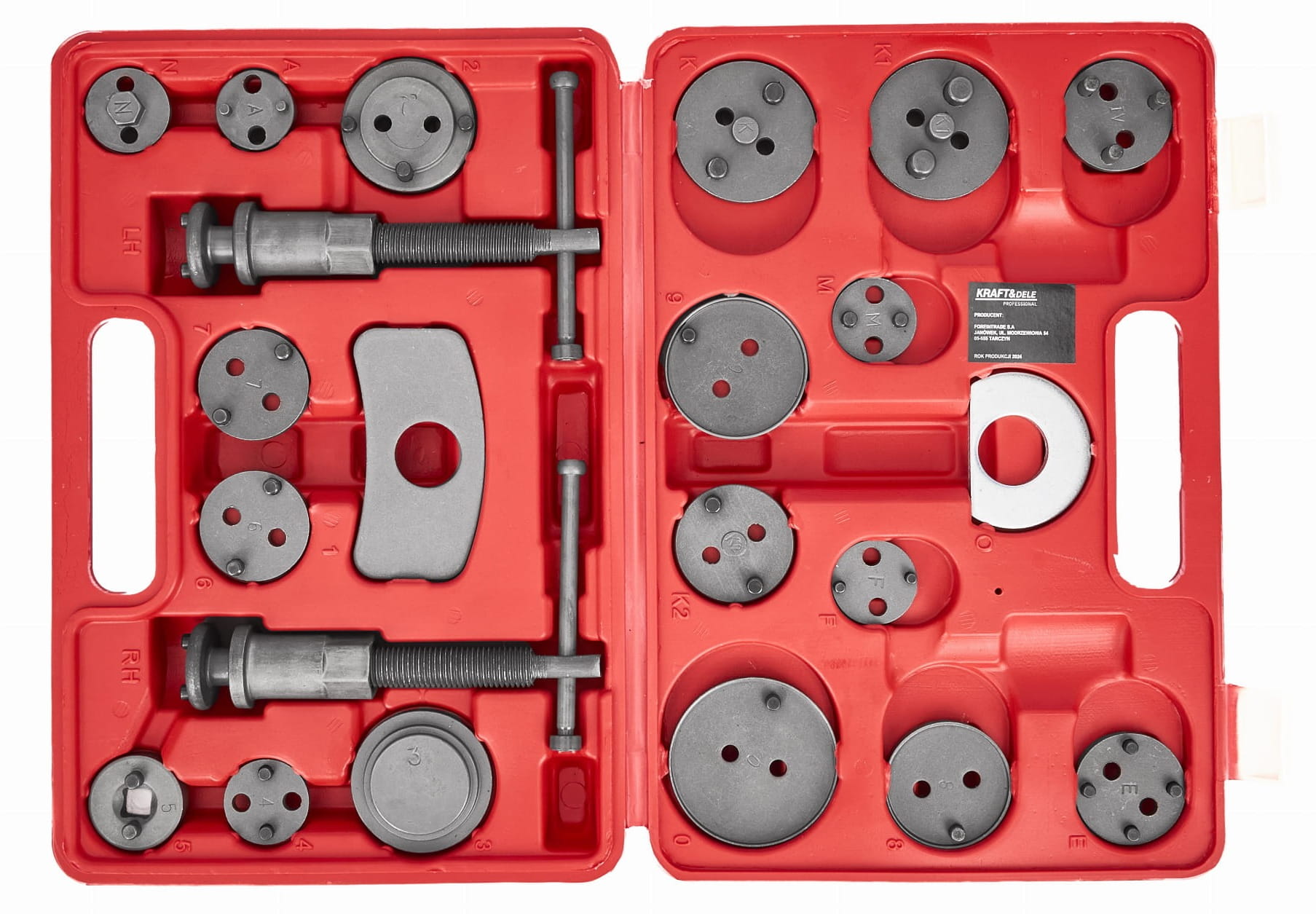 - Typ narzędzia: zestaw do wyciskania tłoczków hamulcowych