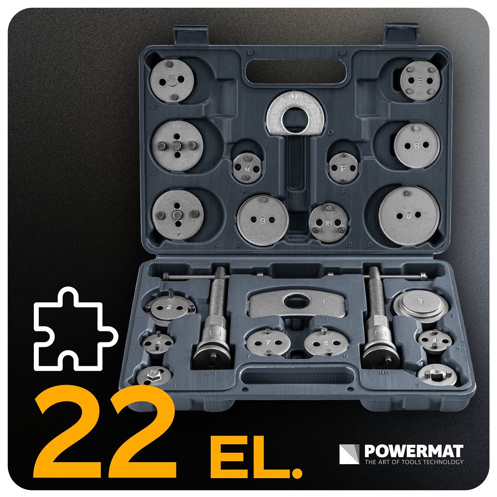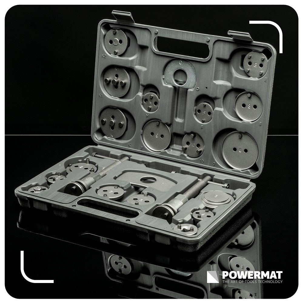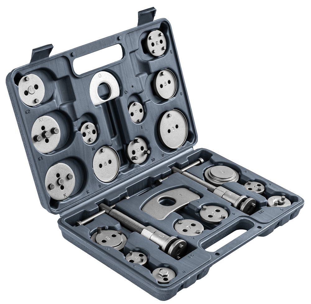 - Uniwersalność zastosowania – 20 adapterów umożliwia dopasowanie do wielu typów tłoczków hamulcowych