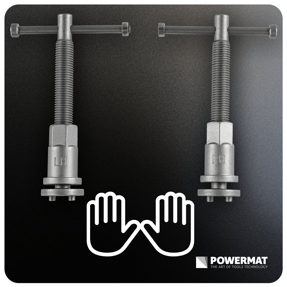 - Obsługa prawego i lewego gwintu – dwie praski pozwalają na pracę zgodną z konstrukcją zacisku