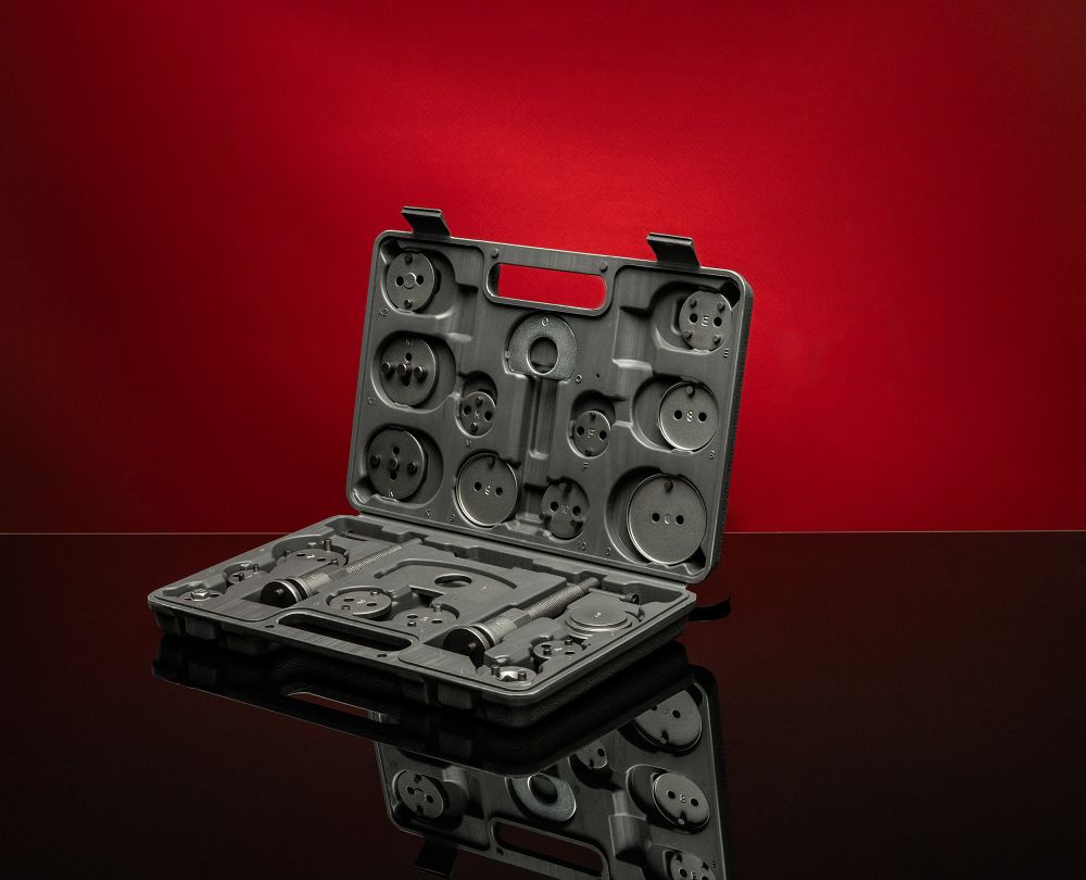 Zestaw znajduje zastosowanie podczas serwisowania układów hamulcowych w samochodach osobowych. Sprawdza się przy wymianie klocków hamulcowych oraz przy pracach konserwacyjnych zacisków. Dzięki szerokiej gamie adapterów może być stosowany w wielu modelach pojazdów, w tym w samochodach europejskich i azjatyckich.