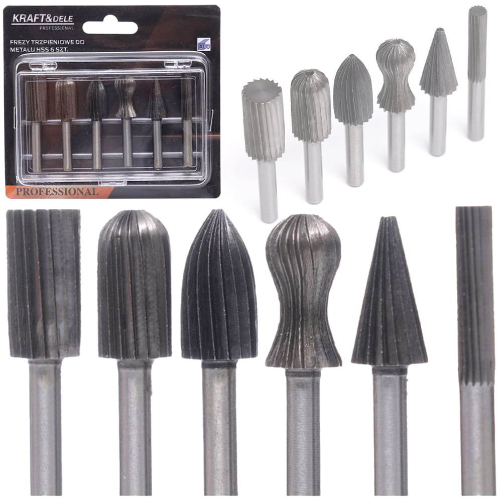 Zestaw frezów trzpieniowych to praktyczne narzędzie przeznaczone do precyzyjnej obróbki metalu i innych materiałów. Dzięki wykonaniu z wysokiej jakości stali szybkotnącej (HSS), frezy te oferują trwałość oraz skuteczność przy różnorodnych pracach warsztatowych. Komplet zawiera sześć różnych kształtów frezów, co umożliwia szerokie spektrum zastosowań w obróbce powierzchni i krawędzi.