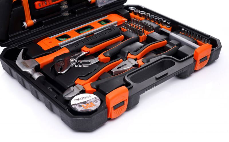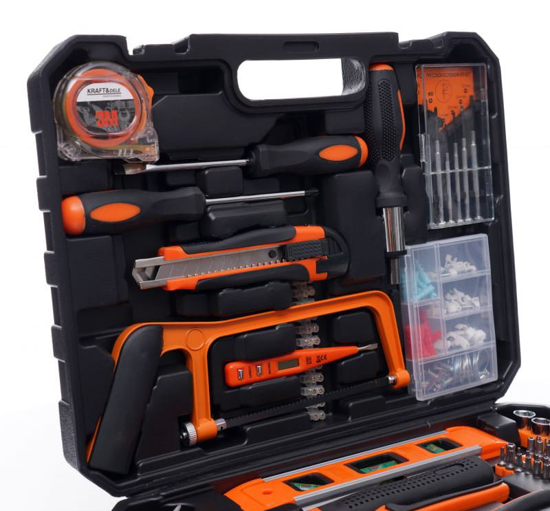 Niezwykle rozbudowany zestaw narzędzi marki Kraft&Dele. Narzędzia cechuje solidne wykonanie, wytrzymałe materiały oraz poręczna walizka, w której każde narzędzie ma swoje miejsce.