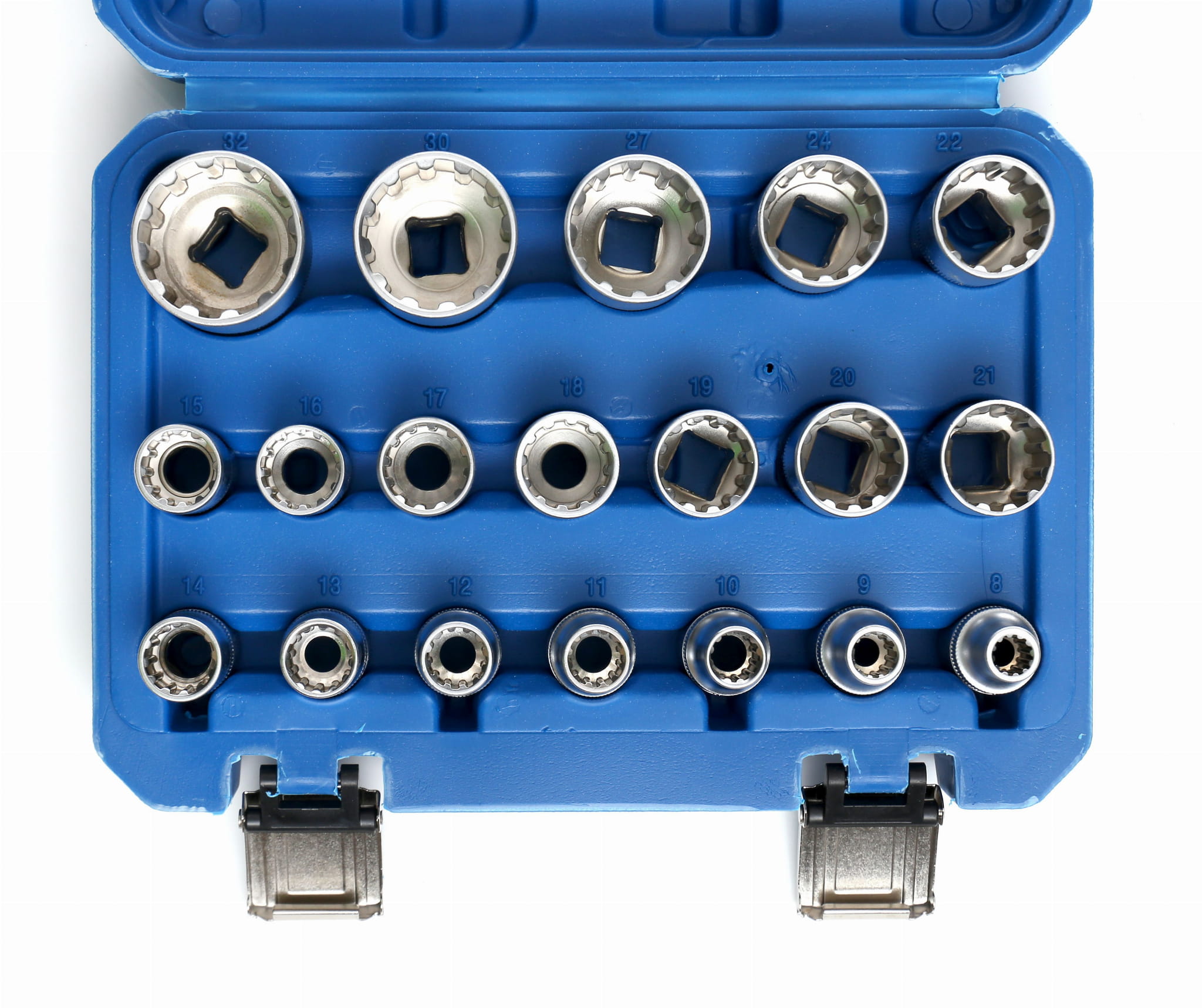 ZESTAW KLUCZY NASADOWYCH NASADEK 1/2'' NASADKI SPLINE 8-32mm 19szt