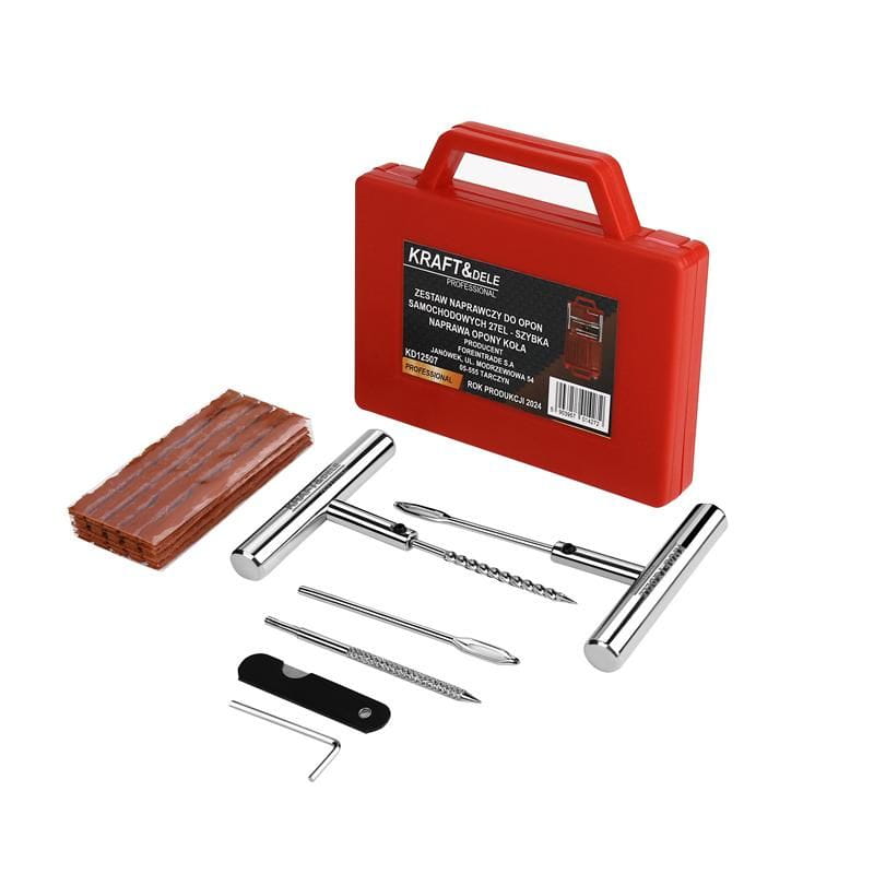 Zestaw naprawczy KD12507 to praktyczne i niezawodne rozwiązanie do szybkiej naprawy opon bezdętkowych (tubeless) bez konieczności ich demontażu z felgi. Idealny do stosowania w garażu, warsztacie, jak również w trasie jako wyposażenie awaryjne.