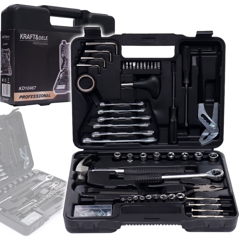 Niezwykle rozbudowany zestaw narzędzi marki Kraft&Dele o symbolu KD10467. Narzędzia cechuje solidne wykonanie, wytrzymałe materiały oraz poręczna walizka, w której każde narzędzie ma swoje miejsce.