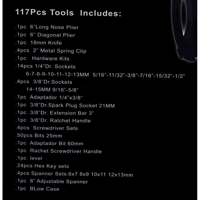 ZESTAW NARZĘDZI KLUCZY WALIZKA NARZĘDZIOWA KLUCZE SZCZYPCE WKRĘTAKI 117EL