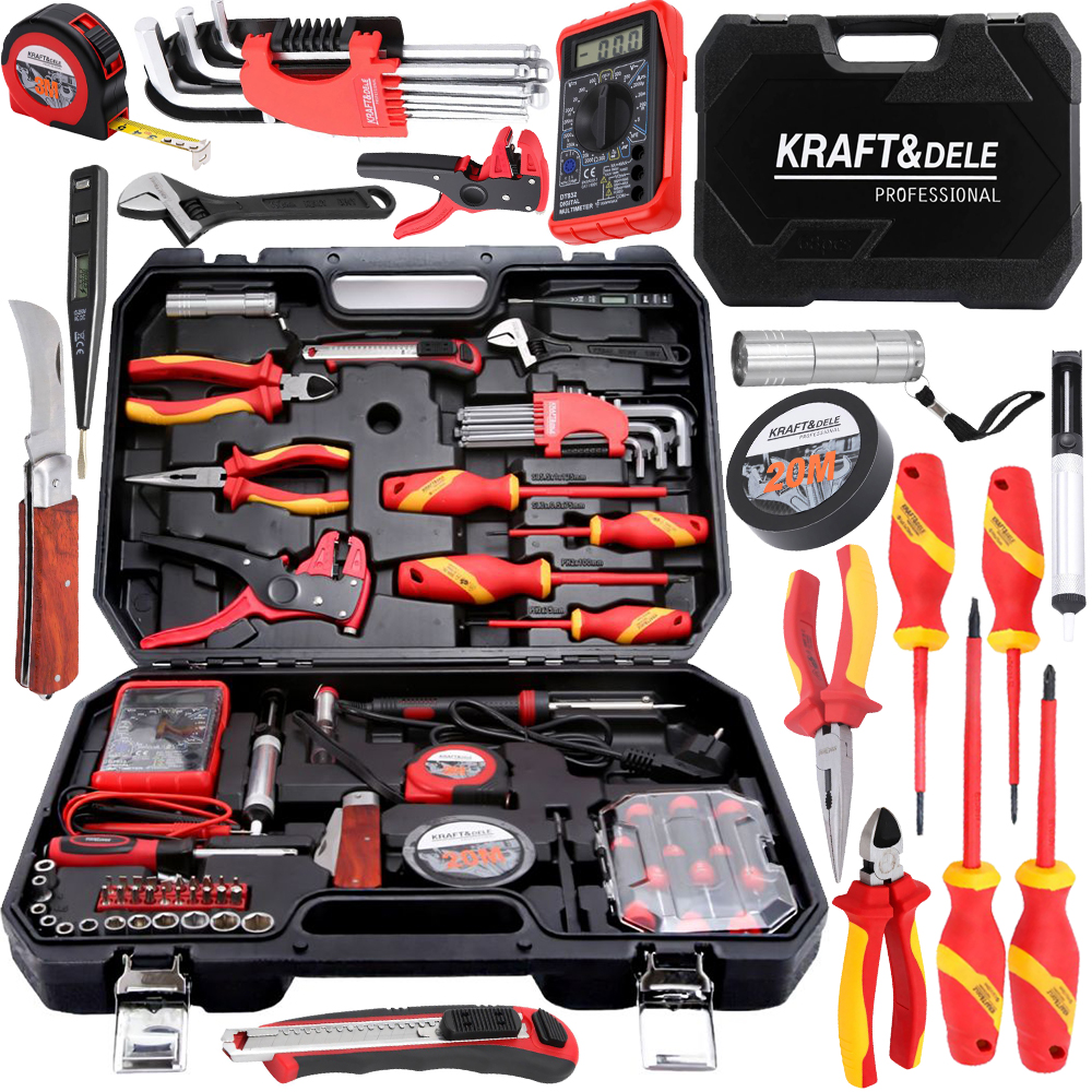 Każde narzędzie zostało wykonane z myślą o trwałości i wygodzie użytkowania. Izolowane wkrętaki i szczypce zapewniają bezpieczną pracę przy napięciu do 1000V. Klucze i nasadki wykonane są z materiałów odpornych na odkształcenia, a ergonomiczne uchwyty narzędzi poprawiają komfort podczas długotrwałej pracy. Solidna walizka zabezpiecza zawartość i umożliwia wygodne przenoszenie.