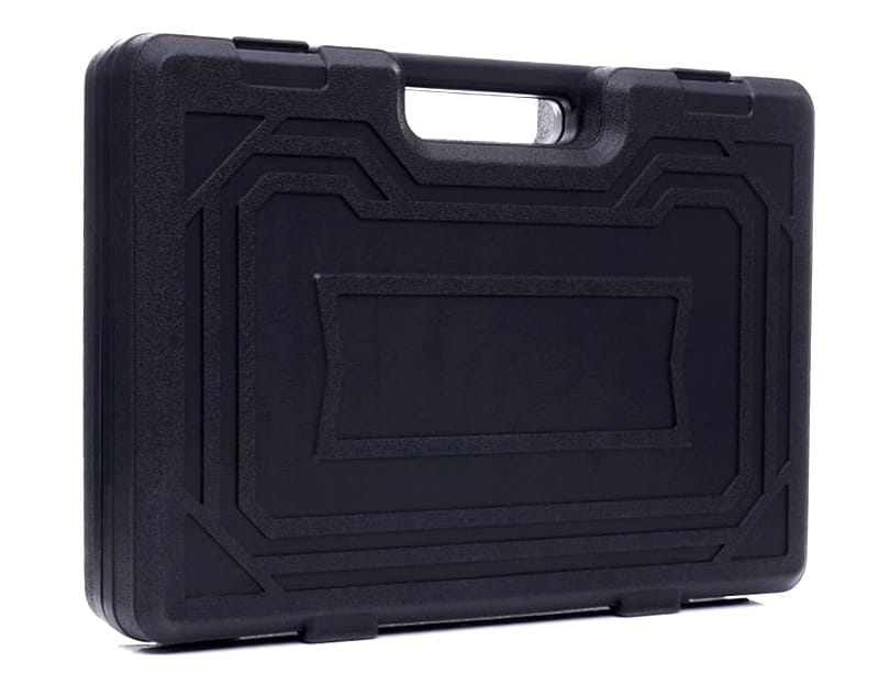 Walizka wykonana z trwałych tworzyw sztucznych pozwala na utrzymanie porządku i łatwe przenoszenie narzędzi. Każde narzędzie posiada swoje wyznaczone miejsce, w których łatwo znaleźć potrzebny rozmiar klucza.