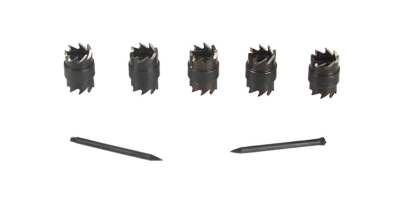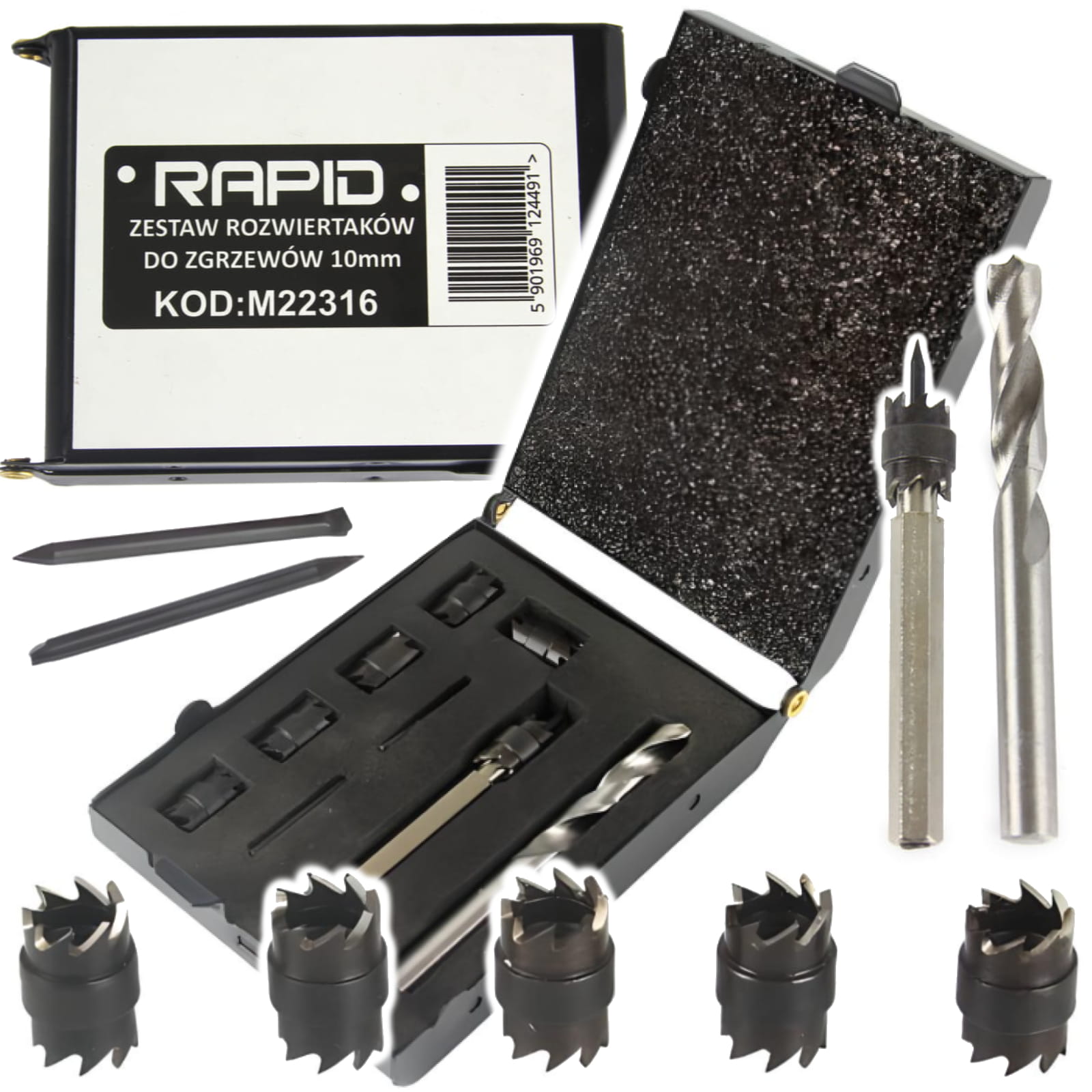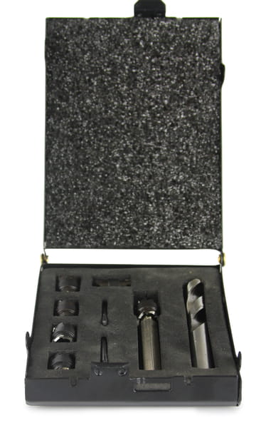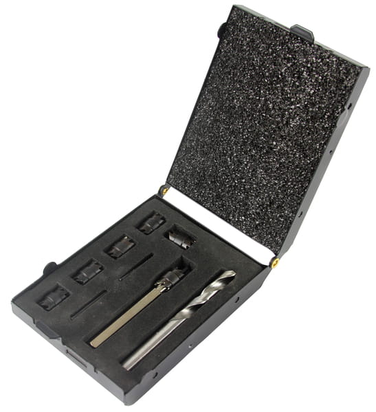 Zestaw przeznaczony do usuwania zgrzewów, spawów, spoin karoserii samochodowej. Zestaw zawiera 6 dwustronnych frezów koronkowych, uchwyt mocujący, 3 trzpienie ustalające oraz wiertło HSS 8mm.