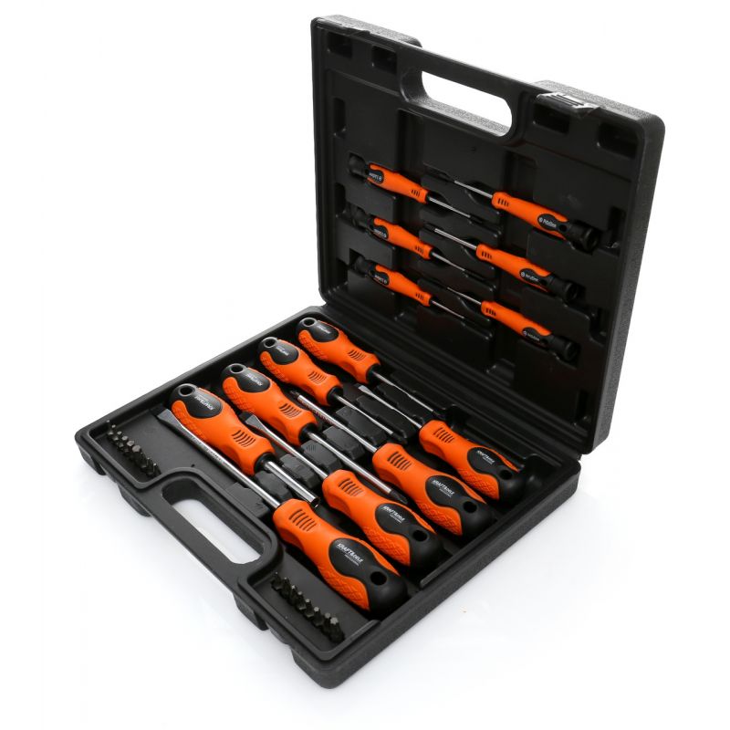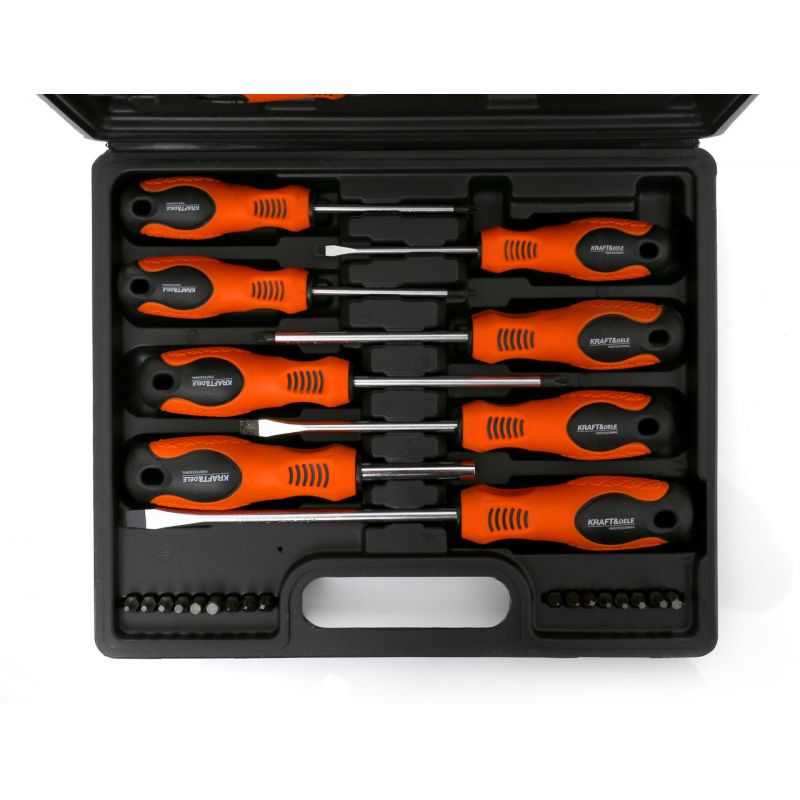 Zestaw śrubokrętów i bitów KD10902 marki Kraft&Dele to praktyczny komplet narzędzi, który znajdzie zastosowanie zarówno w warsztacie domowym, jak i profesjonalnym. W skład zestawu wchodzi 32 elementy, w tym wkrętaki tradycyjne i precyzyjne oraz zestaw bitów z uchwytem. Całość jest zapakowana w solidną walizkę, co ułatwia organizację i przechowywanie narzędzi.