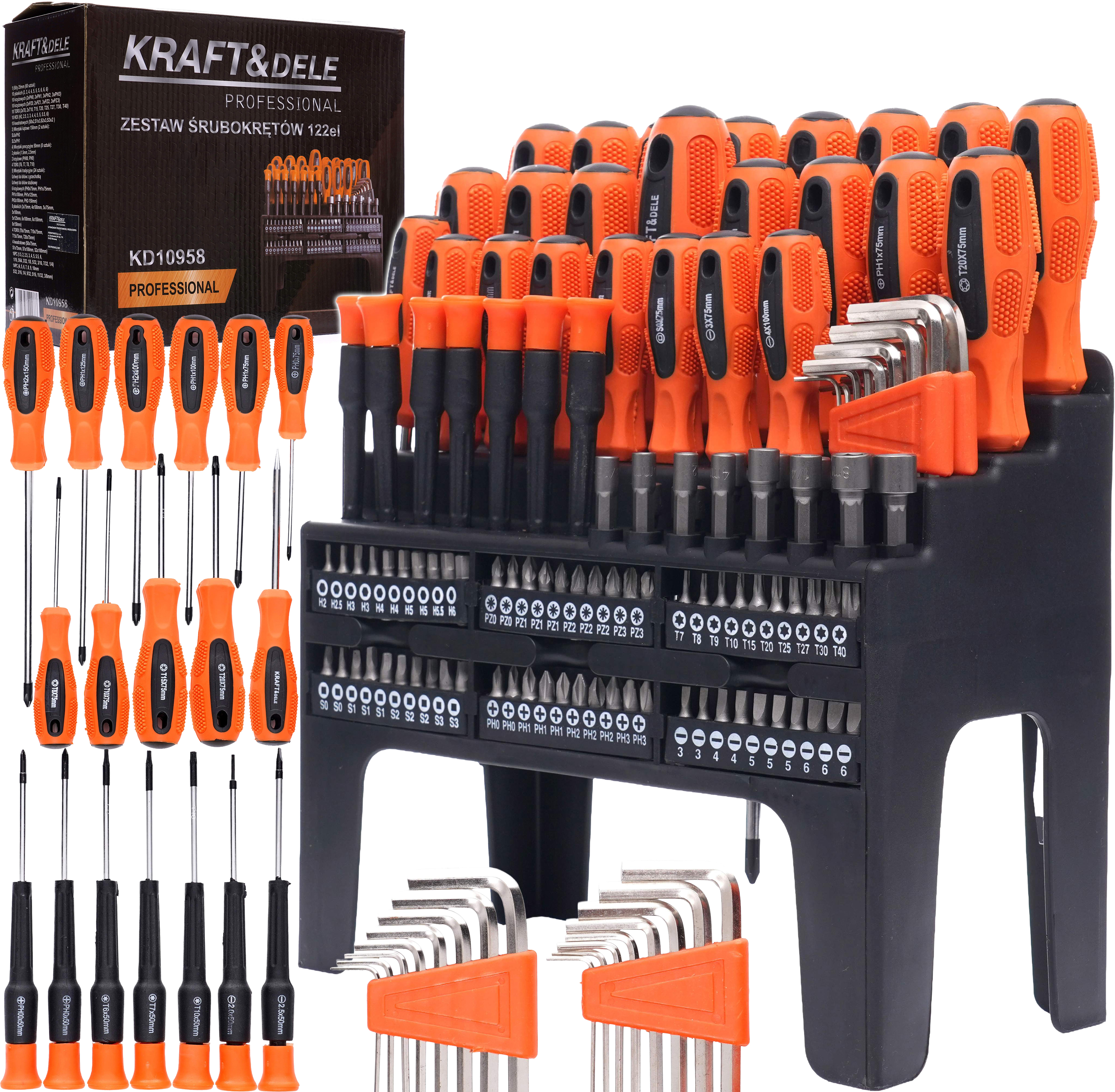 ZESTAW ŚRUBOKRĘTÓW I BITÓW NA STOJAKU ŚRUBOKRĘTY BITY PH PZ TORX HEX 122el
