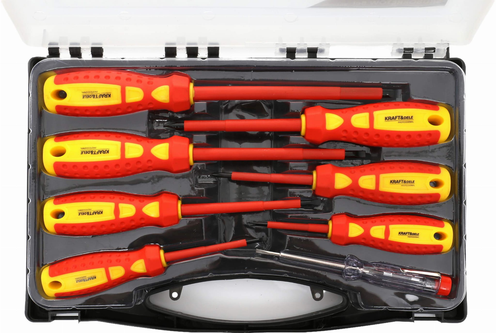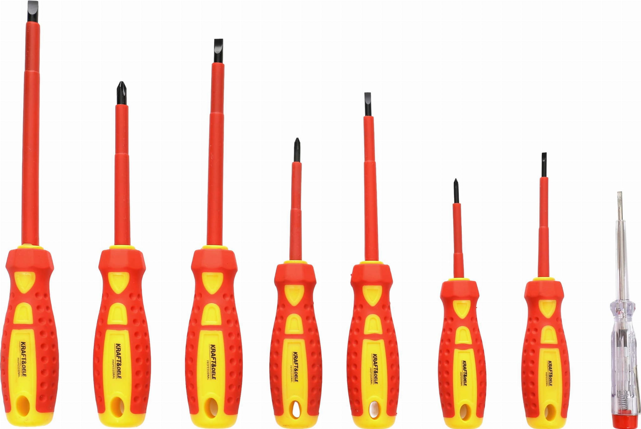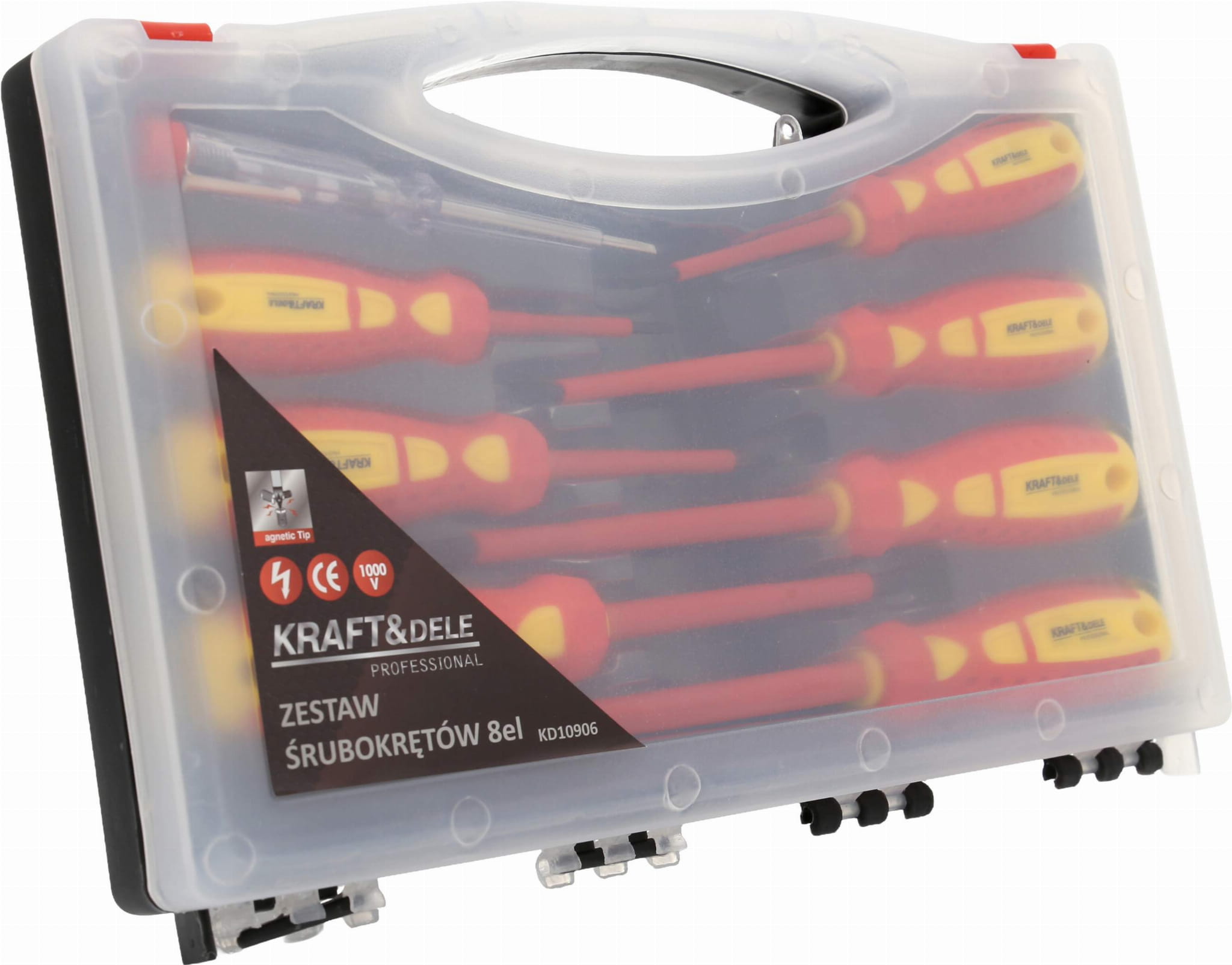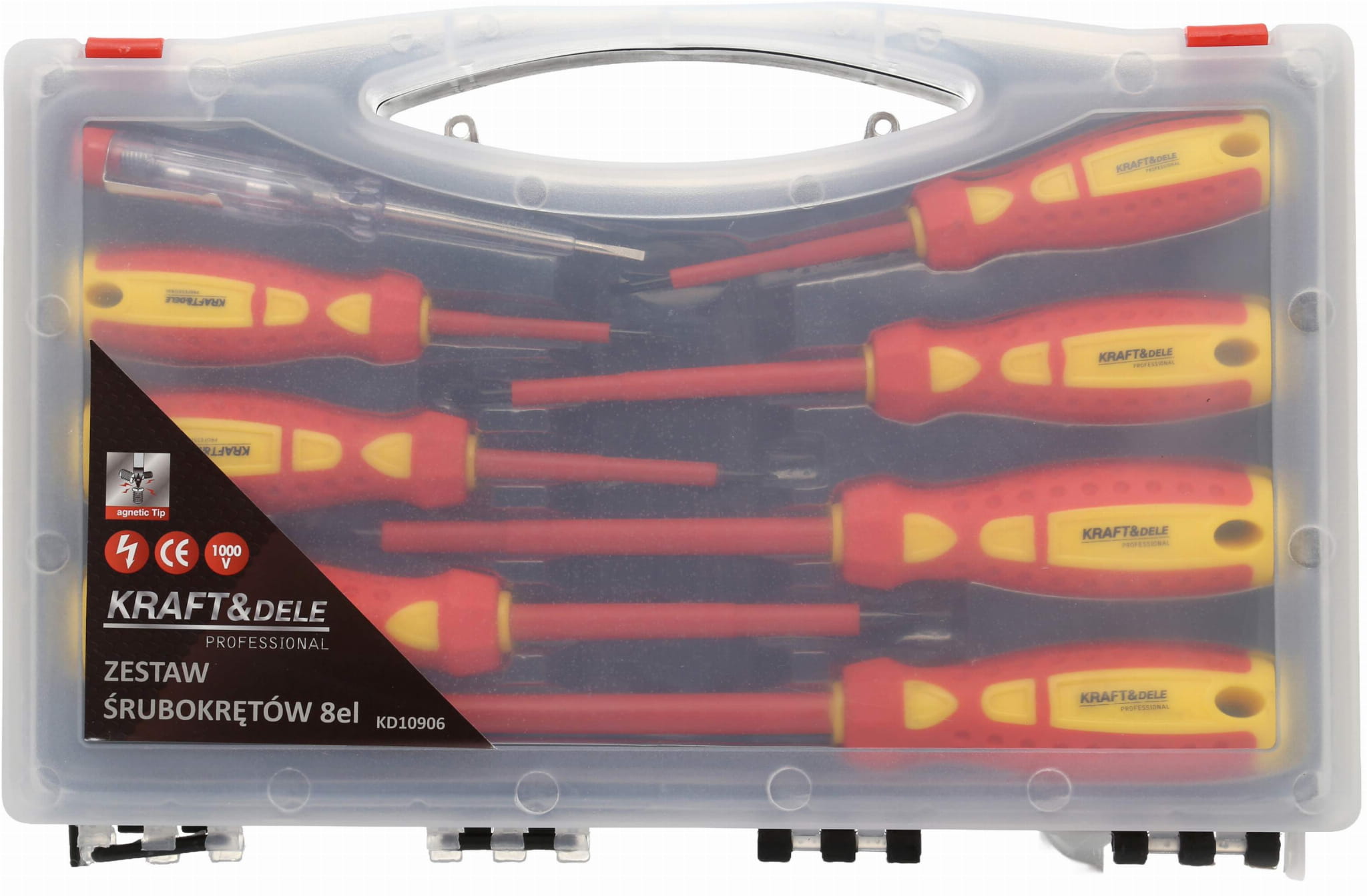 Kompletny zestaw – zawiera wkrętaki płaskie, krzyżowe oraz próbnik napięcia.