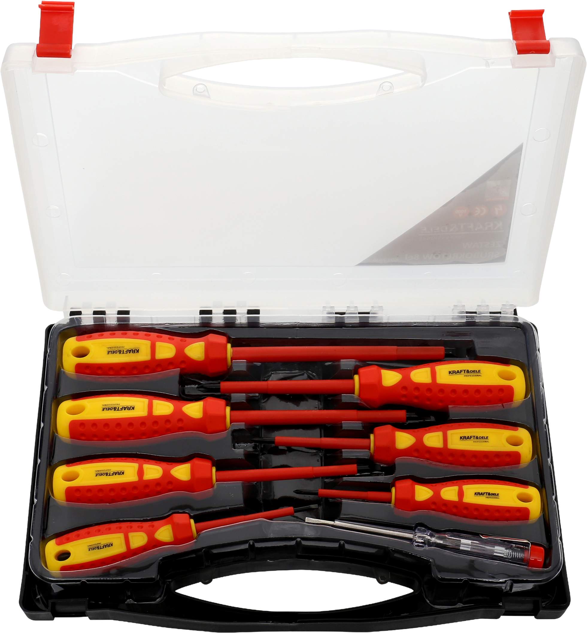 ZESTAW ŚRUBOKRĘTÓW WKRĘTAKÓW IZOLOWANYCH ELEKTRYCZNYCH +PRÓBNIK W WALIZCE 8