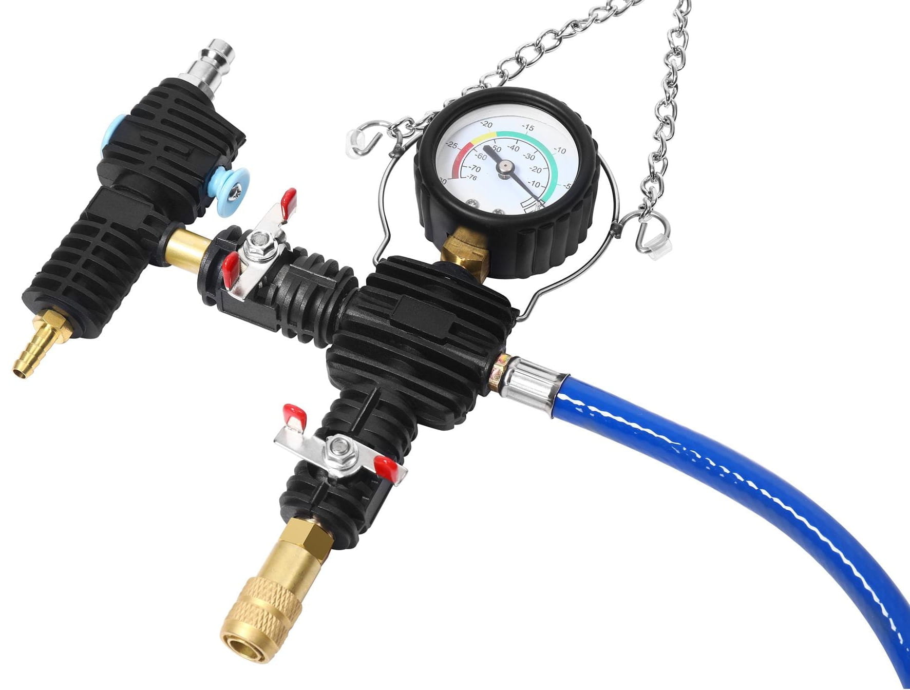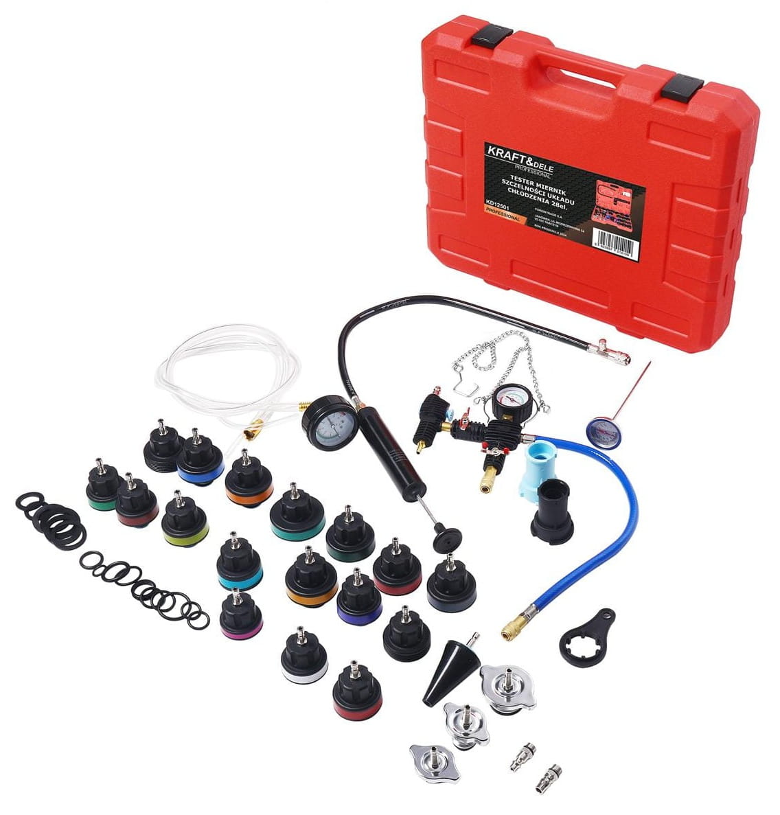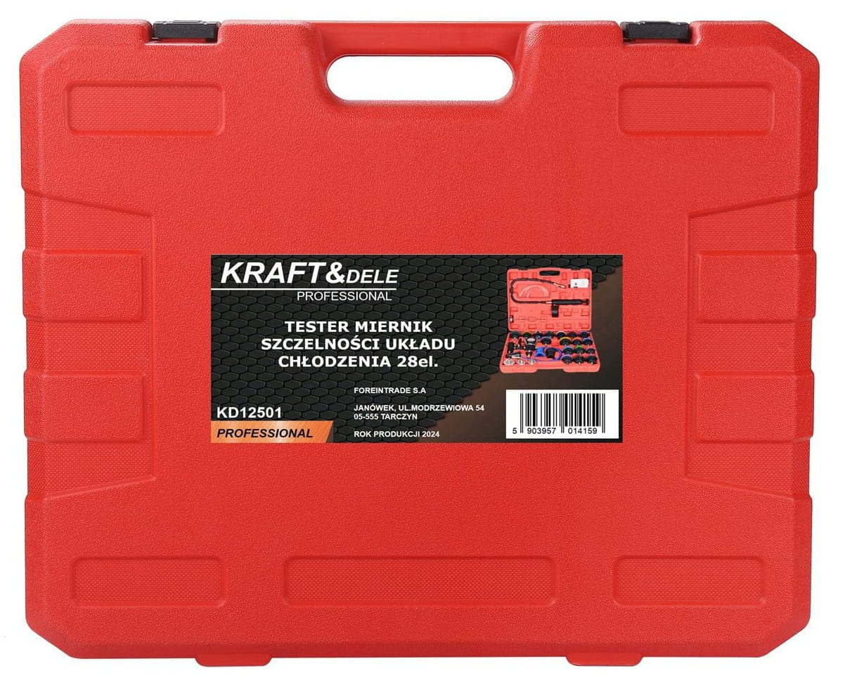 Zestaw został zaprojektowany z myślą o wygodzie użytkowania. Pompka z czytelnym manometrem umożliwia precyzyjną kontrolę parametrów, a odpowiednio dobrane adaptery zapewniają szczelne i stabilne połączenie z układem chłodzenia. Solidna konstrukcja elementów wpływa na długą żywotność narzędzia, natomiast walizka transportowa ułatwia organizację i zabezpiecza zawartość podczas przechowywania.