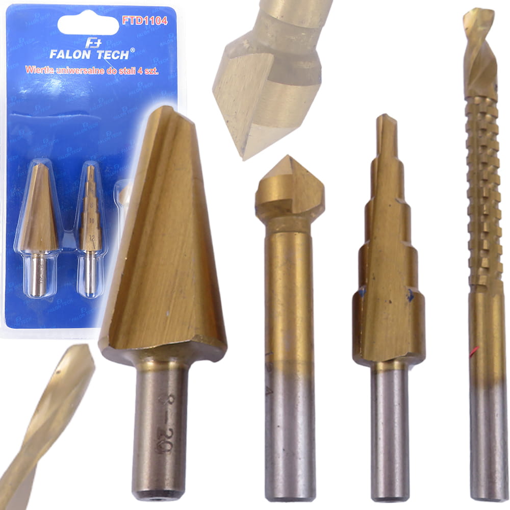 ZESTAW WIERTEŁ UNIWERSALNYCH DO STALI METALU 4el WIERTŁA STOPNIOWE ROZWIERTAK