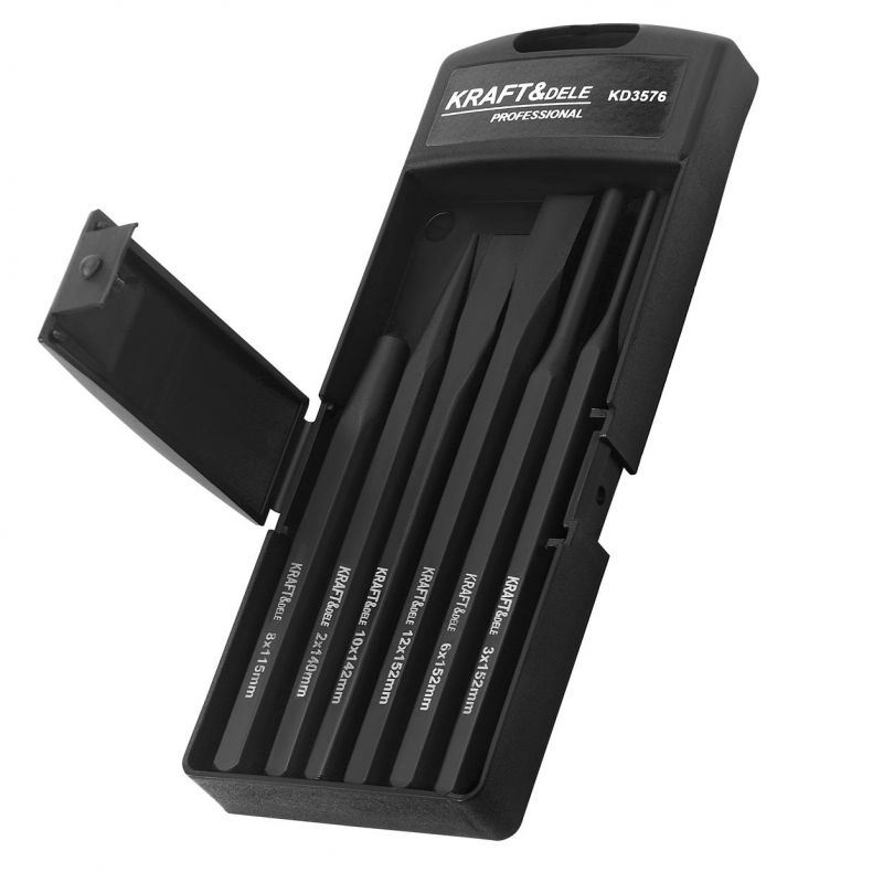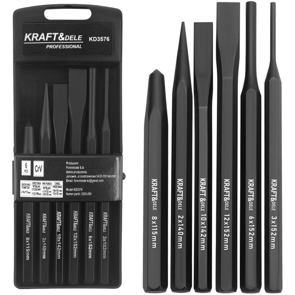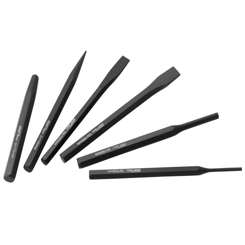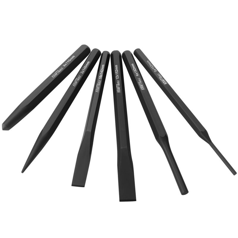 Każdy element zestawu został zaprojektowany z myślą o wygodnej i bezpiecznej pracy. Punktak ułatwia dokładne oznaczanie miejsc wiercenia, wybijaki umożliwiają szybkie i precyzyjne wybijanie elementów, a przecinaki sprawdzają się przy przecinaniu metalu i innych materiałów. Dzięki zróżnicowanym rozmiarom narzędzia można dostosować do wielu zadań warsztatowych.
