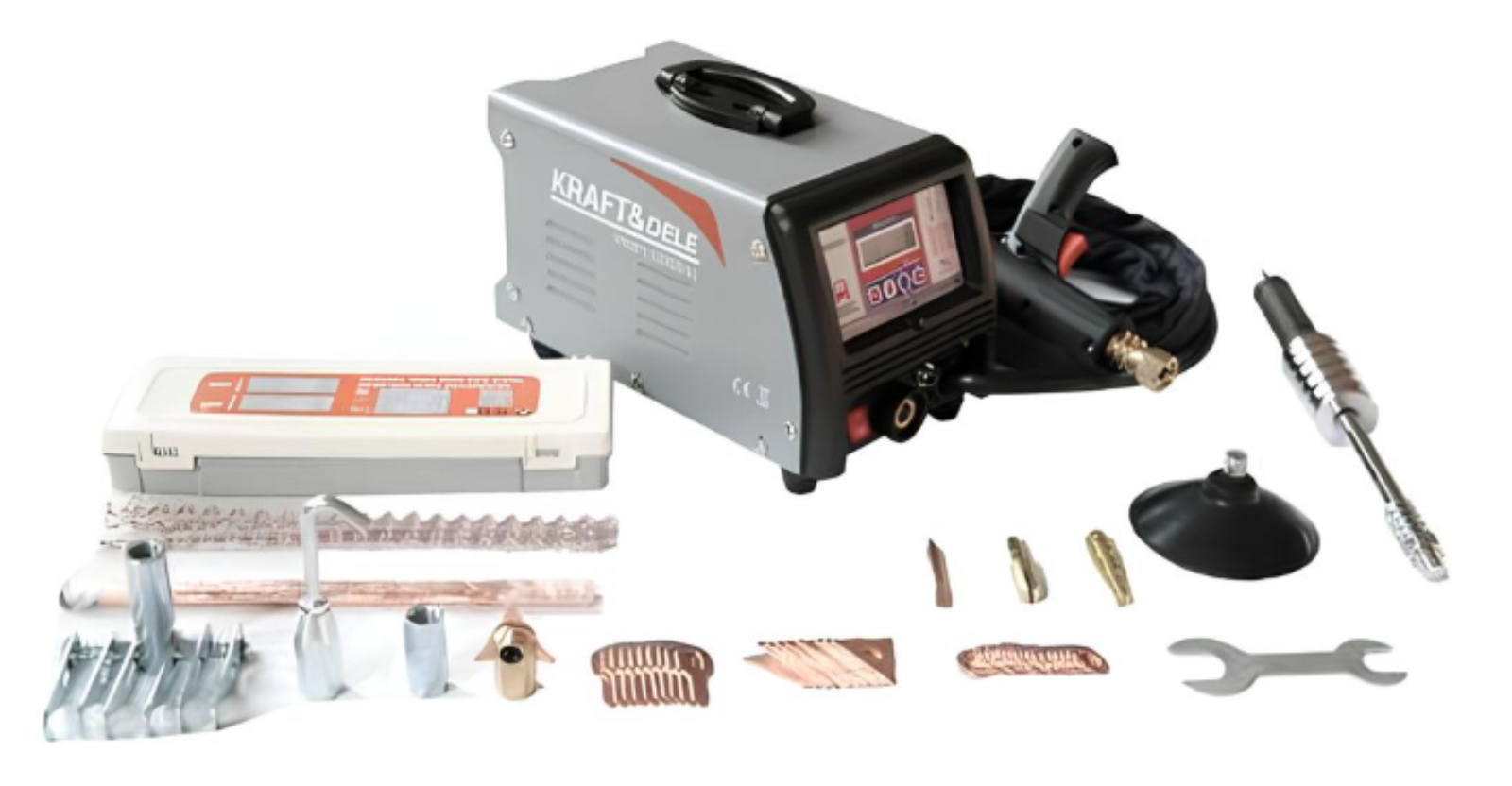 Urządzenie jest przystosowane do pracy w sieci 220 V i gwarantuje stabilne działanie nawet podczas intensywnej eksploatacji. Zestaw dodatkowych końcówek pozwala na szybkie dostosowanie metody naprawy do rodzaju uszkodzenia.